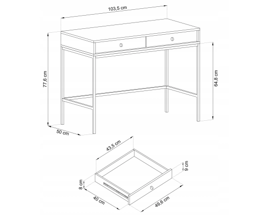 Toaletka biurko wyposażona w dwie szuflady. Stanowić będzie idealne uzupełnienie aranżacji wnętrza meblami z kolekcji.