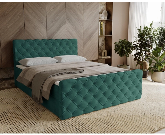 Główny materac opiera się na sprężynach bonellowych o wysokości 20 cm, co gwarantuje stabilne wsparcie i długotrwałą wytrzymałość. Dodatkowy panel przedni nadaje mu futurystyczny wygląd, sprawiając, że łóżko Maris idealnie komponuje się w nowoczesnych aranżacjach sypialni. Ręczne głębokie pikowania.