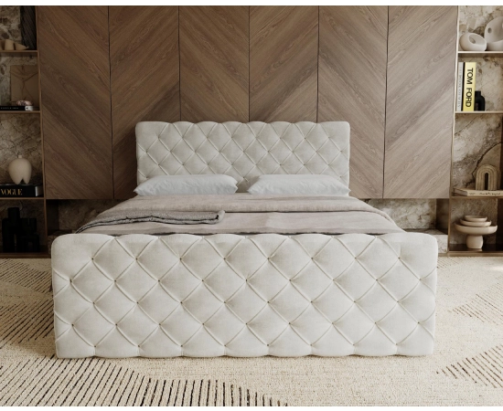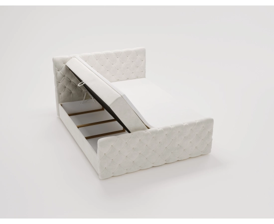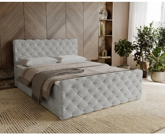 Główny materac opiera się na sprężynach bonellowych o wysokości 20 cm, co gwarantuje stabilne wsparcie i długotrwałą wytrzymałość. Dodatkowy panel przedni nadaje mu futurystyczny wygląd, sprawiając, że łóżko Maris idealnie komponuje się w nowoczesnych aranżacjach sypialni. Ręczne głębokie pikowania.
