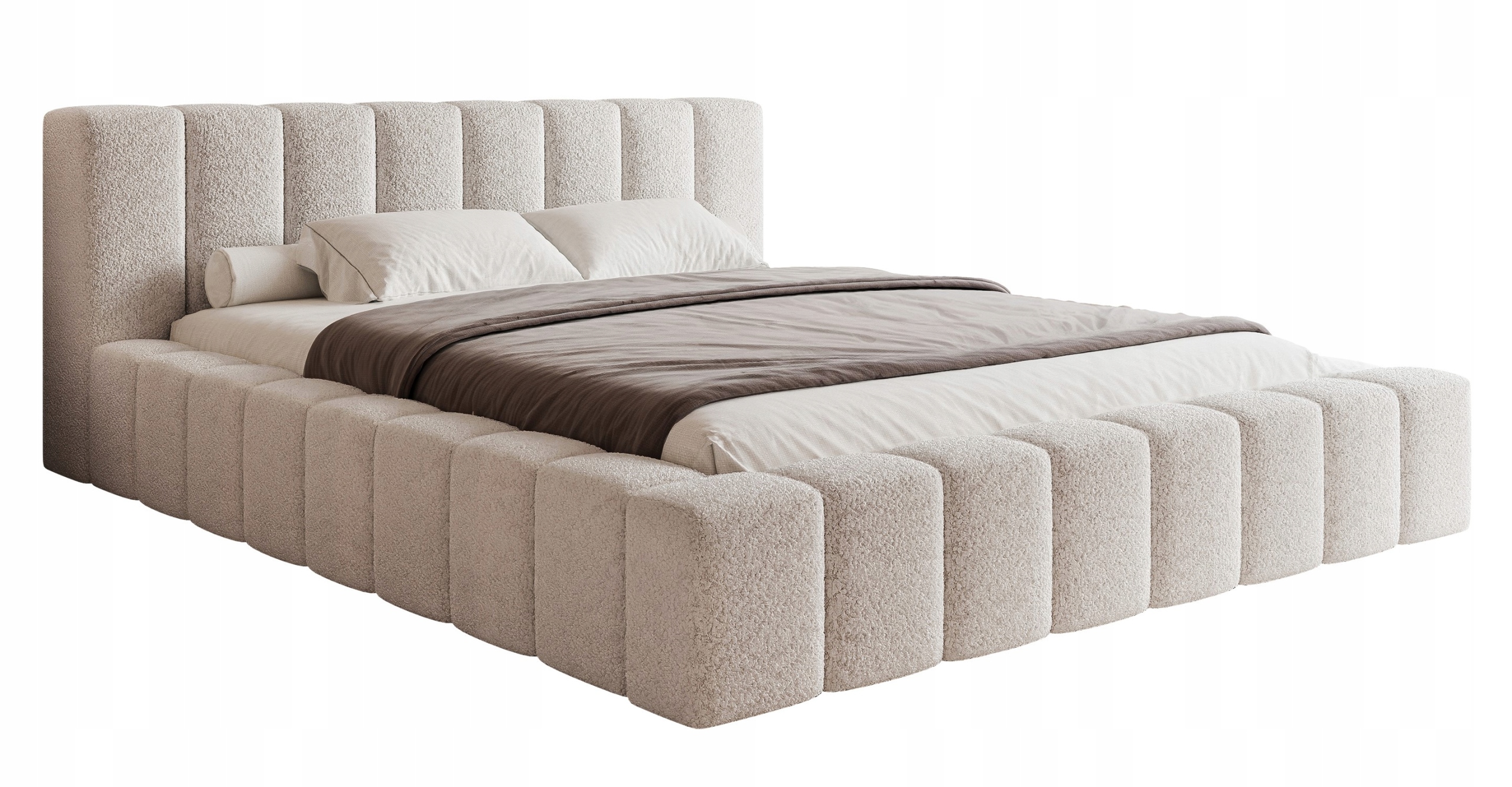 Łóżko sypialniane Marika 200x200 to nowoczesny i elegancki mebel, który doskonale wpisuje się w stylowe aranżacje sypialni. Tapicerowane łóżko miękką i przyjemną w dotyku tkaniną boucle Abriamo lub luksusowym welurem Magic Velvet, zapewnia wyjątkowy komfort użytkowania. Jego obłe kształty i szerokie boki nadają całości harmonijny, przytulny wygląd.