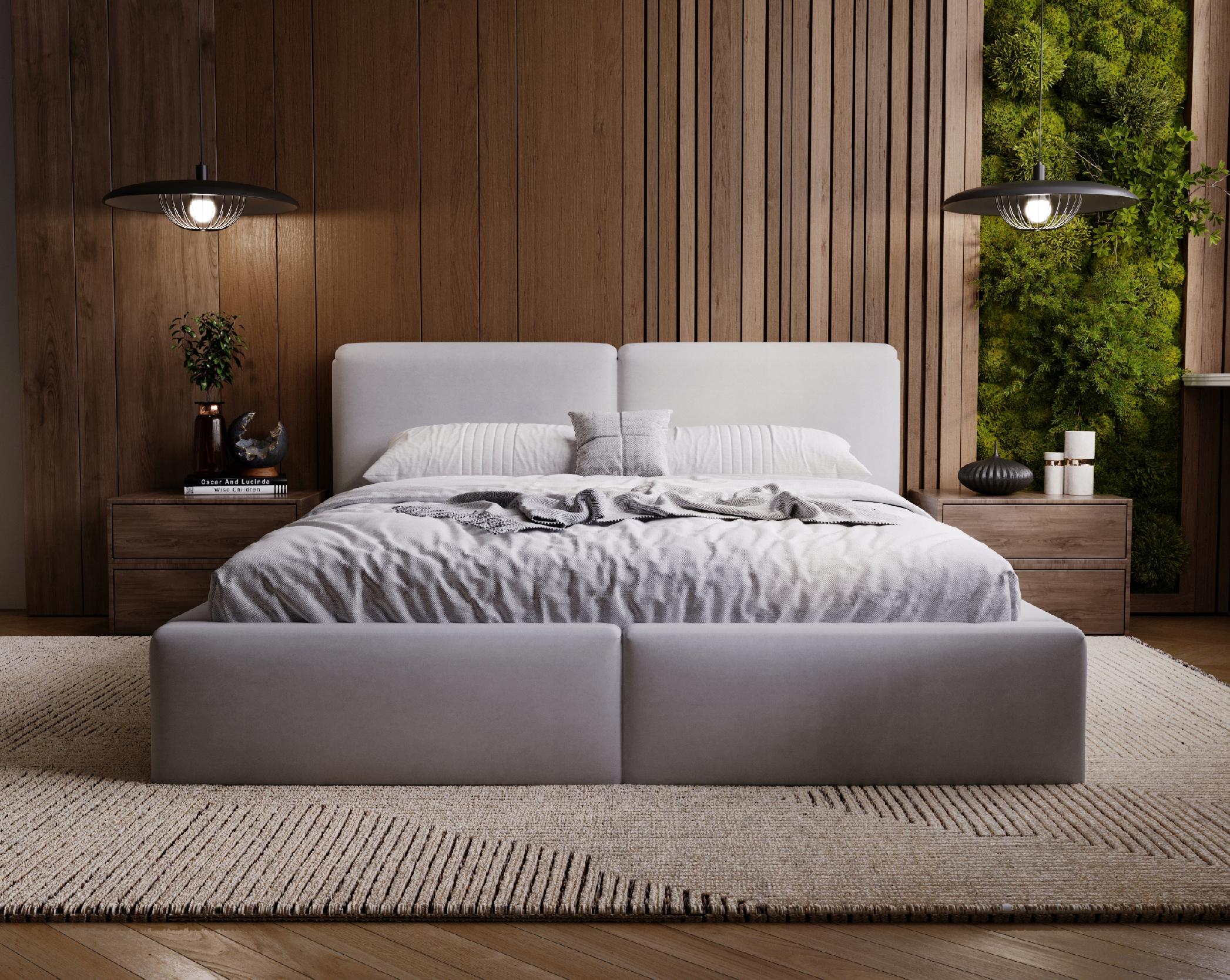Dzięki wbudowanemu pojemnikowi na pościel, możesz skutecznie wykorzystać przestrzeń pod łóżkiem, przechowując pościel, poduszki i inne przedmioty w porządku i z dala od wzroku. Rama łóżka i wezgłowie gwarantują nie tylko estetyczny wygląd, ale także trwałość na lata użytkowania. Łóżko tapicerowane do sypialni 200x200 Diego jest wykonane z dbałością o każdy detal. Dostępne jest w różnych rozmiarach oraz kolorach, co pozwala dostosować ten model do praktycznie każdej sypialni.