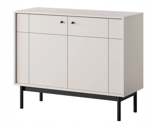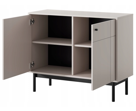 Komoda do salonu 100 cm dwudrzwiowa z czarnymi elementami MALMI kaszmir