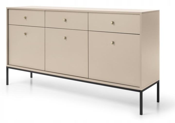 Komoda szeroka 154 wyposażona w trzy zamykane szafki z półkami w środku oraz trzy szuflady. Stanowić będzie idealne uzupełnienie aranżacji wnętrza meblami z kolekcji.