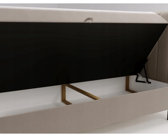 Łóżko kontynentalne 180x200 Limba wyróżnia się eleganckim, nowoczesnym designem z dodatkowymi elementami, które podkreślają jego funkcjonalność i estetykę. Charakteru dodają wysokie 15 cm czarne nóżki. Model ten oferuje dwa duże pojemniki na pościel, co zapewnia praktyczne rozwiązanie do przechowywania. W zestawie znajduje się topper o grubości 4 cm, który poprawia komfort użytkowania i podwyższa ergonomię łóżka.