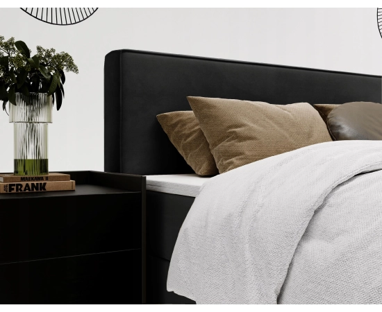Główny materac opiera się na sprężynach bonellowych o wysokości 20 cm, co gwarantuje stabilne wsparcie i długotrwałą wytrzymałość. Zagłowię łóżka posiada elegancką lamówkę na obrzeżach, które nadają stylowy i minimalistyczny wygląd.