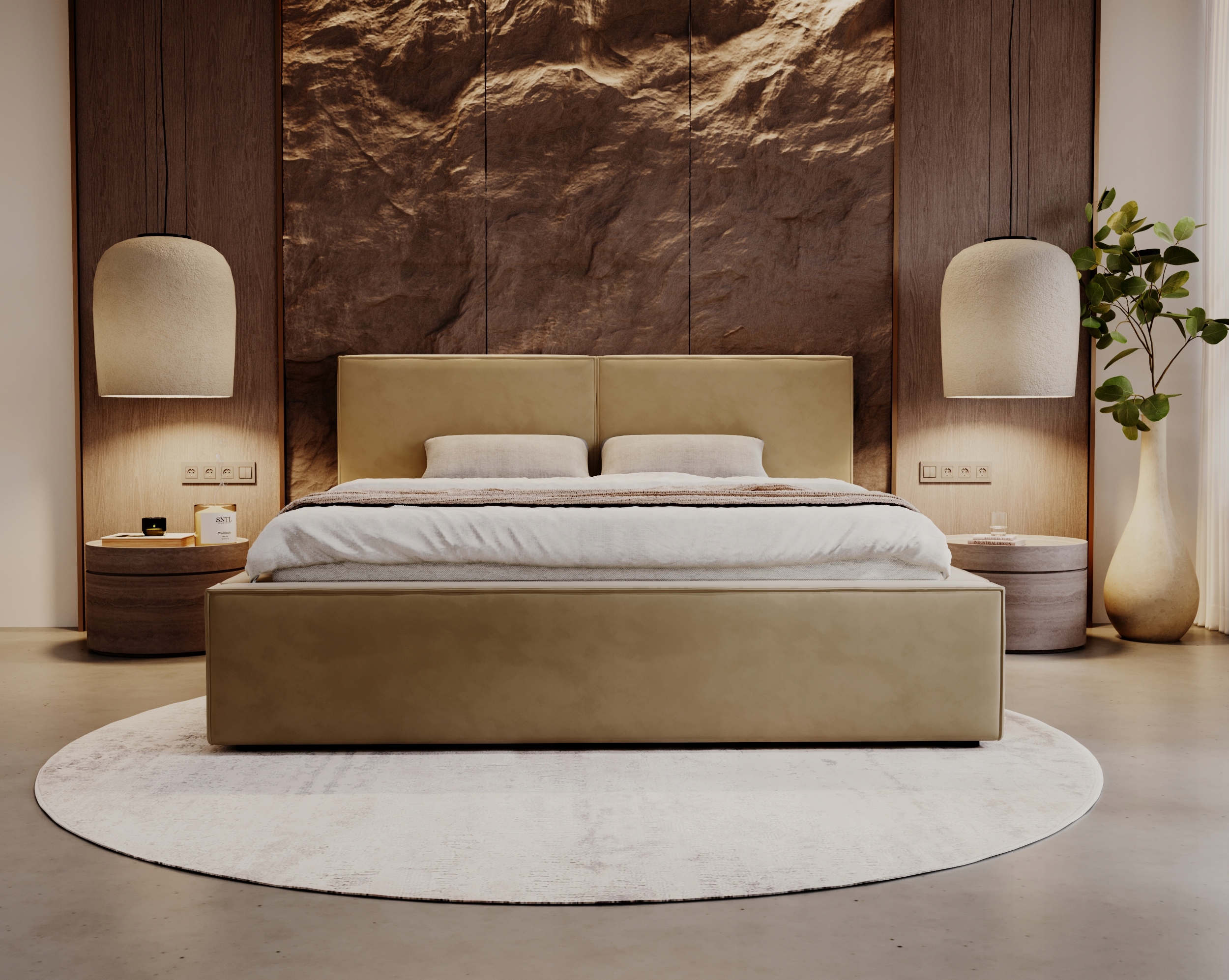 Sypialnia Santorini to wygodne i nowoczesne łóżko tapicerowane do sypialni. Piękne łóżko nada Państwa sypialni niepowtarzalnego uroku i charakteru Łoże sypialniane dostępne jest w czterech rozmiarach 120×200, 140×200, 160×200, 180×200, dzięki czemu dopasujesz je do wymiarów swojej sypialni.