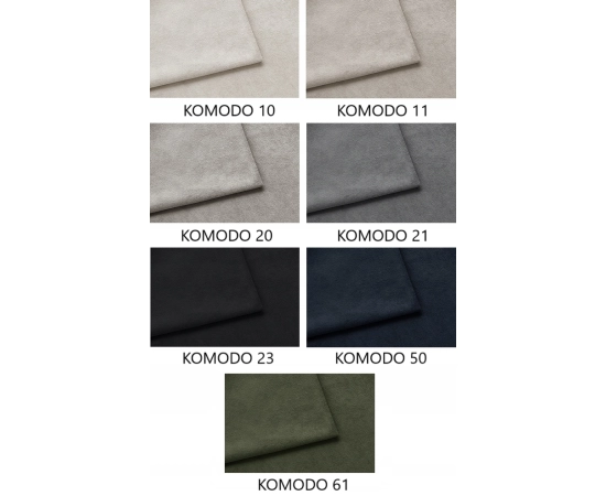 Tkanina Komodo należy do modnych oraz niezwykle przyjemnych w dotyku o wyczuwalnej pod palcami strukturze. Wyglądem tkanina przypomina delikatniejszą odmianę boucle. Tkanina ta jest odporna na ścieranie i łatwa w czyszczeniu. Tkanina jest pozbawiona efektu cieniowania.