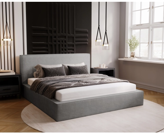 Łóżko tapicerowane Gloria w rozmiarze 120x200 cm to doskonałe połączenie elegancji i praktyczności. Wyposażone w pojemnik na pościel, zapewnia dodatkowe miejsce do przechowywania, co jest idealnym rozwiązaniem do sypialni o ograniczonej przestrzeni. Łóżko do sypialni osadzone na niskich ślizgach gwarantuje stabilność i podkreśla jego nowoczesny styl. Subtelne obszycie lamówką na krawędziach dodaje eleganckiego wykończenia, które przyciąga wzrok i nadaje mu ciekawy charakter. Wysokie zagłowie o wysokości 100 cm to nie tylko dekoracyjny element, ale także wygodne oparcie, idealne do wypoczynku i relaksu z książką czy przy oglądaniu telewizji.