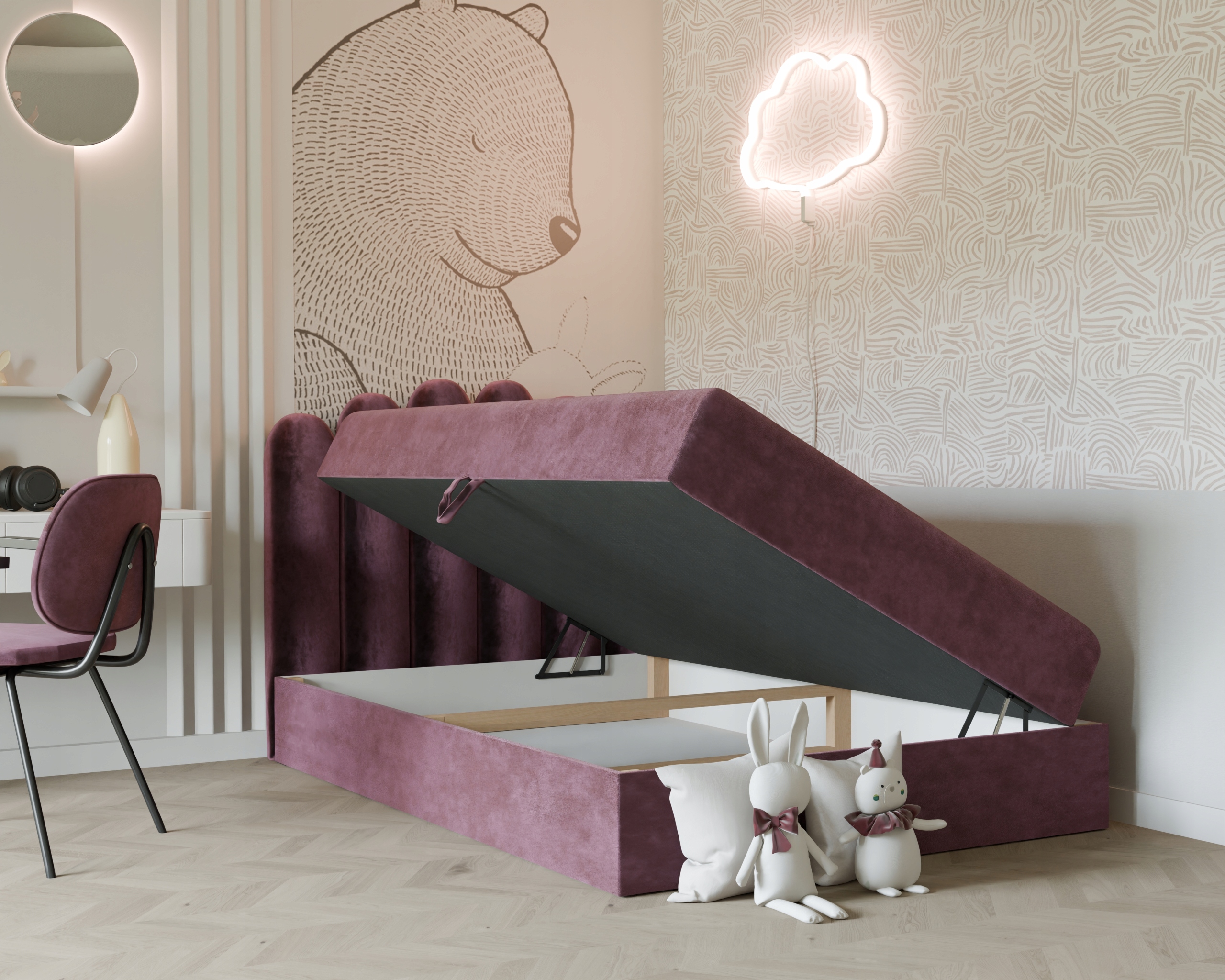 Model wyposażony jest w pojemny schowek na pościel, który ułatwia utrzymanie porządku w pokoju i pozwala na przechowywanie kołdry, poduszek czy innych akcesoriów. Uroku dodaje charakterystyczne zagłowie w kształcie płotka, które nadaje łóżku dziecięcy, przytulny wygląd i zwiększa wygodę podczas codziennego użytkowania.