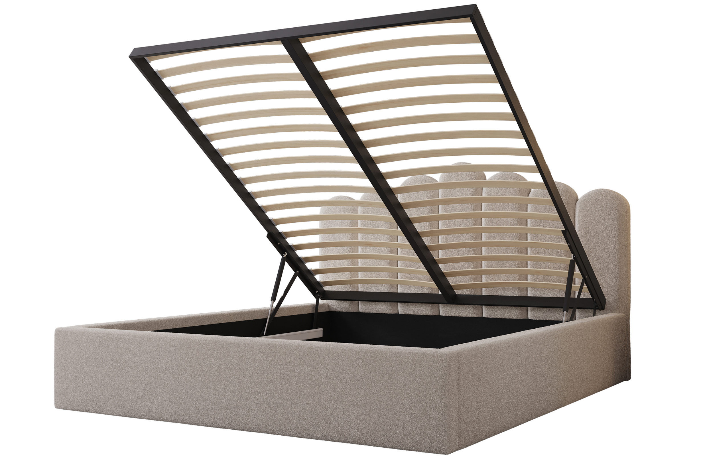 Odkryj doskonałą równowagę między funkcjonalnością a estetyką w łóżku tapicerowanym Diana. Wezgłowie zostało wykonane z zaokrąglonych paneli tapicerowanych na grubej piance nadając mu unikalny i oryginalny wygląd, który przyciąga wzrok. Staranne i solidne wykonanie gwarantuje użytkowanie na lata.