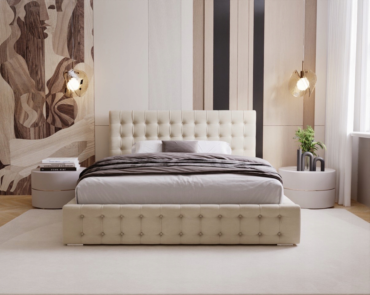 Łóżko Palmo to połączenie nowoczesnego stylu z klasyczną elegancją, które odmieni każdą sypialnię. Charakterystycznym elementem tego modelu są ręcznie wykonane pikowania z guzikami, które nadają łóżku wyjątkowego uroku i wyrafinowanego charakteru. Solidna konstrukcja tapicerowana miękkim, przyjemnym w dotyku materiałem zapewnia komfort użytkowania na najwyższym poziomie.