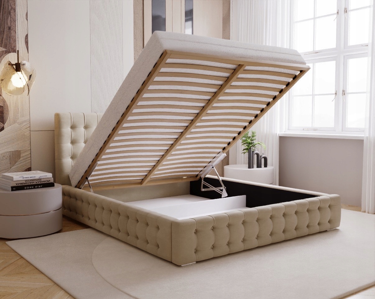 W zestawie znajduje się pojemnik na pościel oraz stelaż drewniany, który gwarantuje odpowiednie podparcie materaca i wentylację. Istnieje również możliwość dokupienia metalowego stelaża z podnośnikiem gazowym dla jeszcze większej wygody i trwałości. Łóżko tapicerowane 160x200 to idealny wybór dla osób ceniących elegancję, funkcjonalność i wysoką jakość wykonania. Pikowane łóżko do sypialni Palmo świetnie komponuje się zarówno z klasycznymi, jak i nowoczesnymi aranżacjami wnętrz, tworząc przytulną i stylową przestrzeń do odpoczynku.