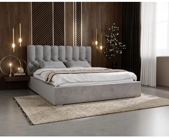 Łóżko sypialniane Rio zostało zaprojektowane z myślą o wygodzie i estetyce, to łóżko z pewnością przyciągnie Twoją uwagę. Stylowe wezgłowie łóżka jest zaprojektowane w taki sposób, aby idealnie podkreślić jego walory, które zdobią głębokie pikowania wykończone guzikami. Nowoczesny charakter mebla sprawia, że jest ono prawdziwą ozdobą wnętrza. Poza świetnym wyglądem, model ten jest także bardzo funkcjonalny, ponieważ wyposażony został w duży pojemnik na pościel. Dzięki takiemu rozwiązaniu przechowasz wszystkie potrzebne rzeczy w jednym miejscu. Rama łóżka o wysokiej jakości, co gwarantuje nie tylko estetyczny wygląd, ale także trwałość na lata użytkowania. W zestawie łóżka znajduję się podnoszony do góry stelaż drewniany.