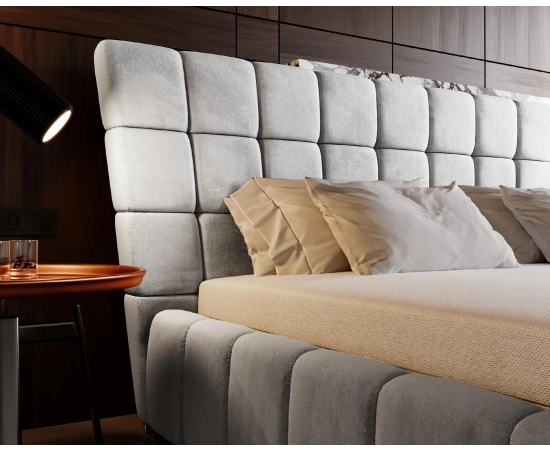 Wykreuj swoją wymarzoną sypialnię dzięki łóżku tapicerowanemu Armin, które zachwyca nie tylko funkcjonalnością, lecz także estetyką. Jego unikatowa solidna konstrukcja i ozdobne przeszycia na zagłówku oraz ramie nadają mu królewskiego charakteru, sprawiając, że staje się centralnym punktem Twojej przestrzeni sypialnianej. Zagłówek jest zaprojektowany w taki sposób, aby zapewnić wygodne oparcie podczas czytania czy oglądania telewizji. Jest ono szersze na górnej części, co dodaje całemu meblu wyjątkowego charakteru.