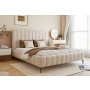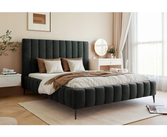Łóżko tapicerowane Tina 160x200 to nowoczesny i stylowy mebel, który świetnie sprawdzi się w każdej sypialni. Posiada pojemnik na pościel, co pozwala na wygodne przechowywanie dodatkowych kołder i poduszek. Osadzone na wysokich metalowych nogach, dzięki czemu całość zyskuje lekkości i elegancji. Zagłówek łóżka sypialnianego zdobią pionowe pasy wykonane z grubej pianki, co dodaje mu charakteru oraz komfortu podczas odpoczynku. Konstrukcja łóżka opiera się na cienkim szkielecie typu slim, który zapewnia wytrzymałość i nowoczesny wygląd.