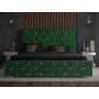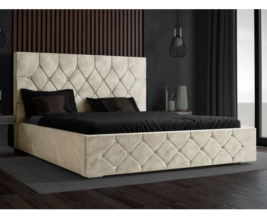 Jest idealnym wyborem dla osób poszukujących designerskiego i wyrafinowanego wnętrza sypialni. Jednym z wyróżniających elementów łóżka glamour Crystal jest wysoki zagłówek. Jest on ozdobiony symetrycznym pikowaniem, które nadaje mu wyjątkowego charakteru. Dodatkowo, na zagłówku umieszczone są kryształowe guziki, które dodają mu blasku i prestiżu.