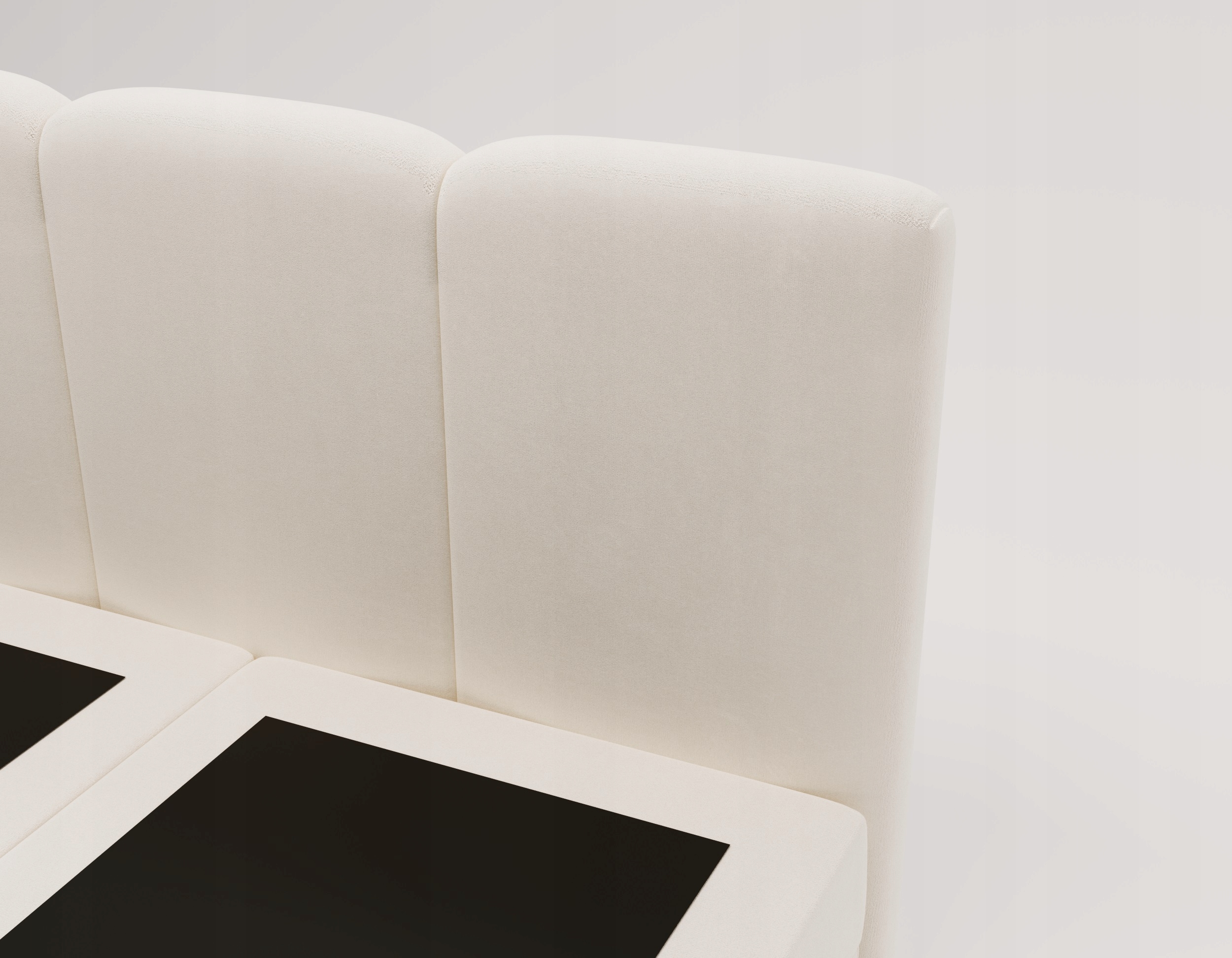 Łóżko kontynentalne 140x200 Poli wyróżnia się eleganckim, nowoczesnym designem z dodatkowymi elementami, które podkreślają jego funkcjonalność i estetykę. Model ten oferuje dwa pojemniki na pościel, co zapewnia praktyczne rozwiązanie do przechowywania. W zestawie znajduje się topper o grubości 4 cm, który poprawia komfort użytkowania i podwyższa ergonomię łóżka.