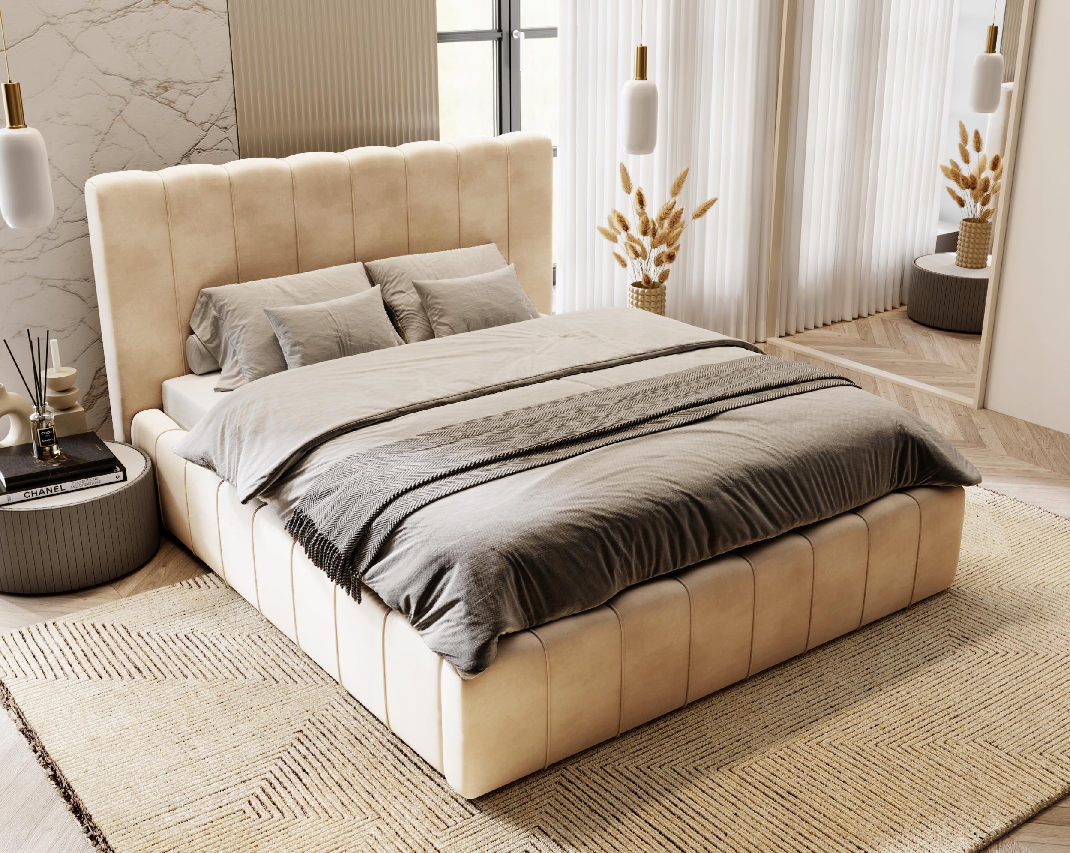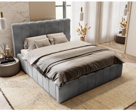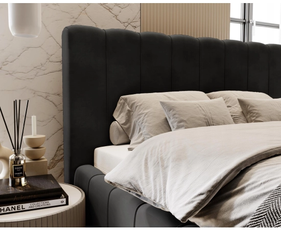 Łóżko Sofia to łóżko tapicerowane, które zniewala swoim wyglądem już od pierwszej sekundy. Wezgłowie wraz z bokami i przodem mebla zostało przeszyte pionowymi liniami, co nadaje temu modelowi niepowtarzalnego designu. Dostępność różnorodnych odcieni tkanin pozwala dopasować łóżko do Twoich osobistych preferencji i stylu, dzięki czemu stanie się ono harmonijnym elementem każdego wnętrza. W dodatku, schowek na pościel pozwoli utrzymać porządek w sypialni, czyniąc to łóżko nie tylko stylowym, ale także funkcjonalnym wyborem.