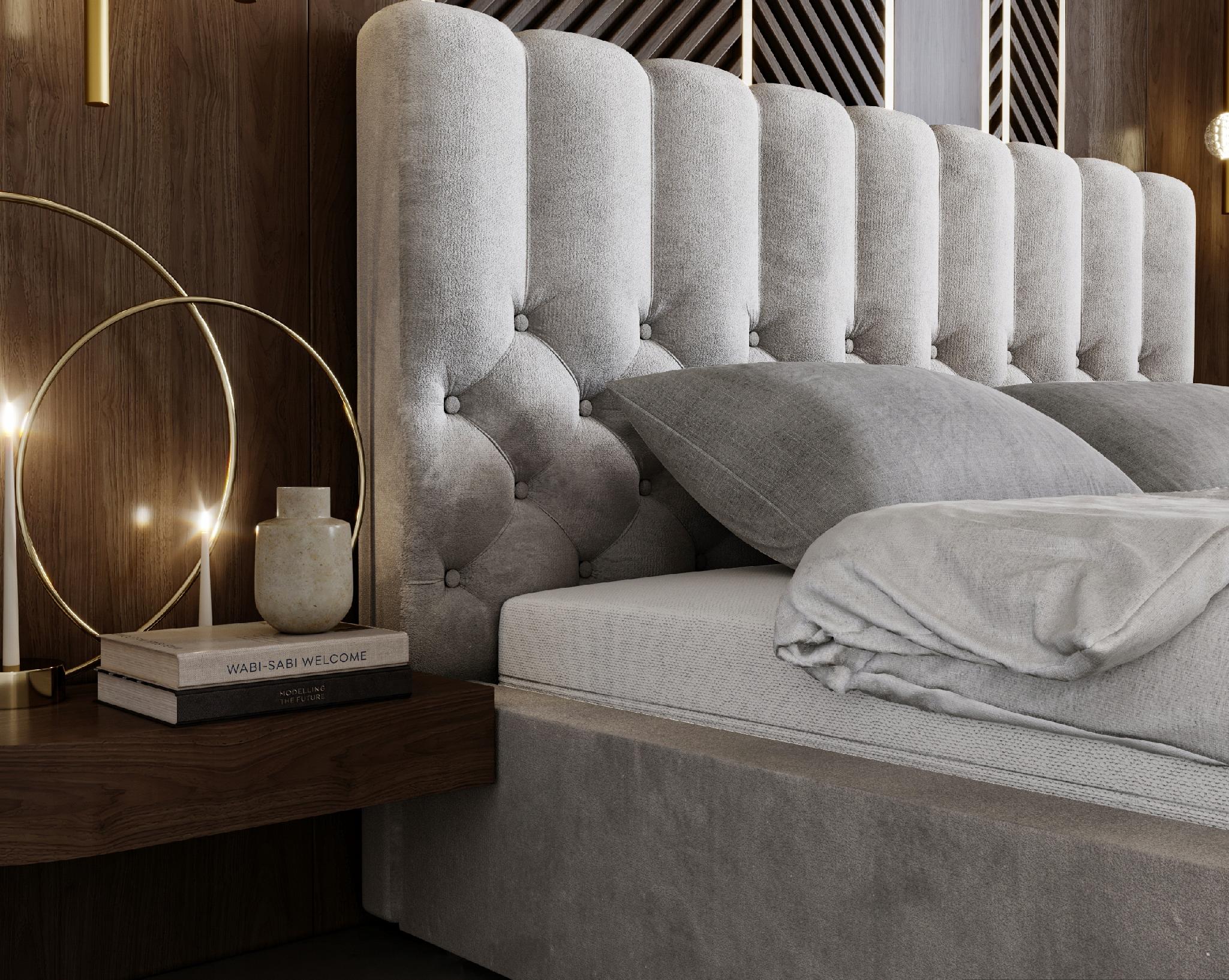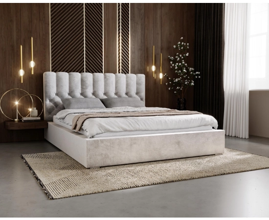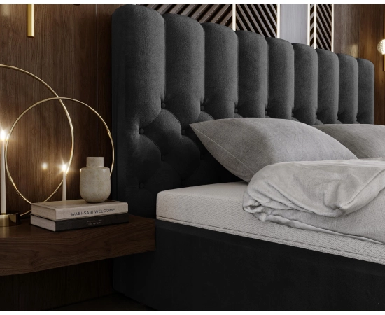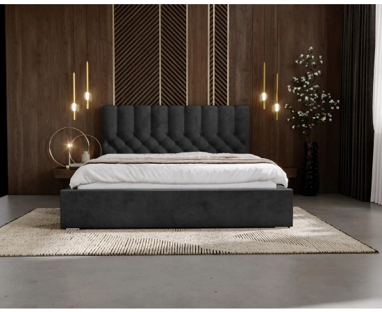 Łóżko sypialniane Rio zostało zaprojektowane z myślą o wygodzie i estetyce, to łóżko z pewnością przyciągnie Twoją uwagę. Stylowe wezgłowie łóżka jest zaprojektowane w taki sposób, aby idealnie podkreślić jego walory, które zdobią głębokie pikowania wykończone guzikami. Nowoczesny charakter mebla sprawia, że jest ono prawdziwą ozdobą wnętrza. Poza świetnym wyglądem, model ten jest także bardzo funkcjonalny, ponieważ wyposażony został w duży pojemnik na pościel. Dzięki takiemu rozwiązaniu przechowasz wszystkie potrzebne rzeczy w jednym miejscu. Rama łóżka o wysokiej jakości, co gwarantuje nie tylko estetyczny wygląd, ale także trwałość na lata użytkowania. W zestawie łóżka znajduję się podnoszony do góry stelaż drewniany.