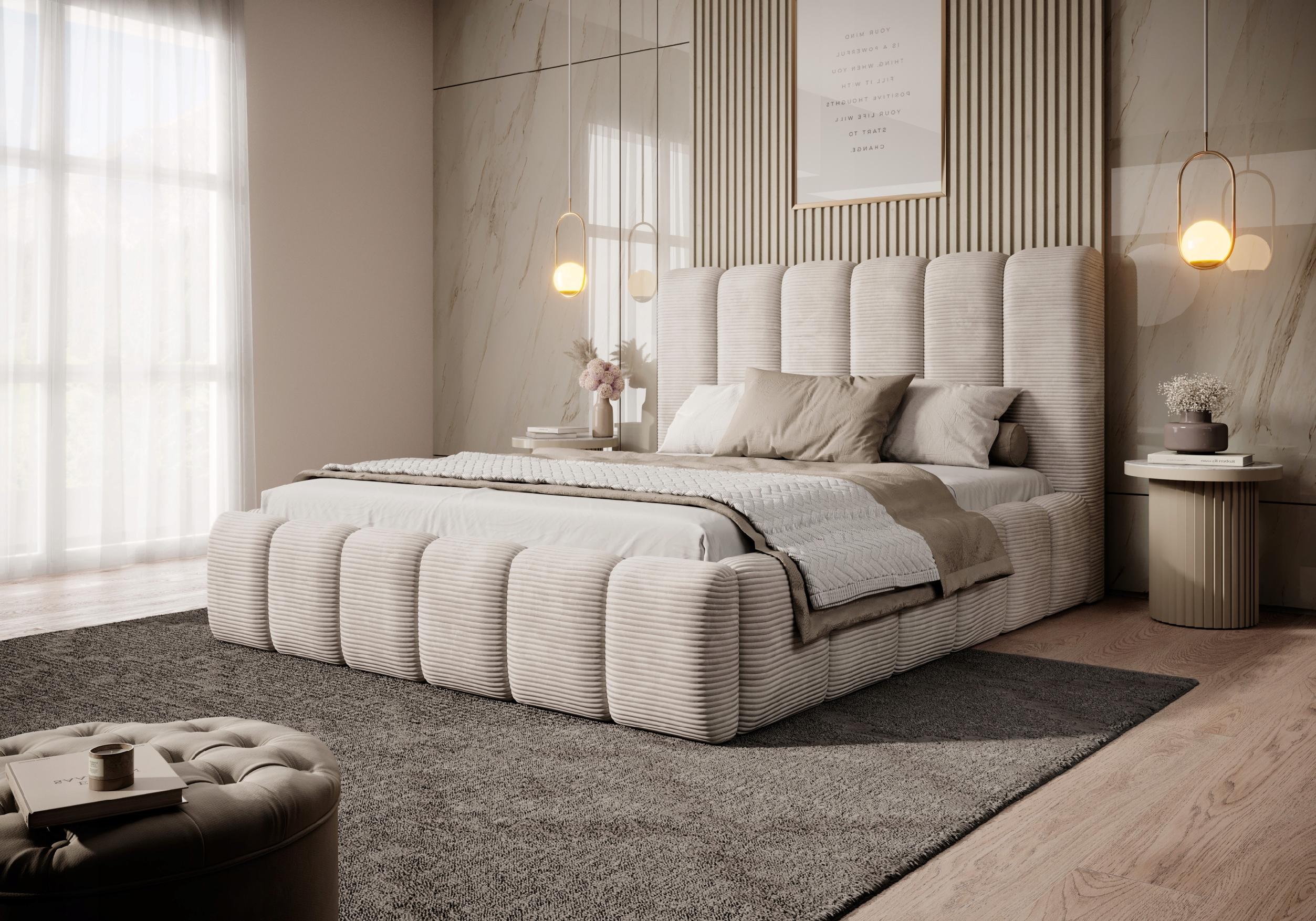 Dream to łóżko tapicerowane, które zniewala swoim wyglądem już od pierwszej sekundy. Wysokie wezgłowie wraz z bokami i przodem mebla zostało przeszyte pionowymi wypukłymi liniami z przeszyć, które dają niesamowity efekt 3D. Łóżko sypialniane 180 Dream to niezwykle wygodne i komfortowe łóżko. Jego niepowtarzalny design, szczególnie przykuwa uwagę w sypialni. Uczucie miękkości zapewnia doskonałe chwile relaksu.