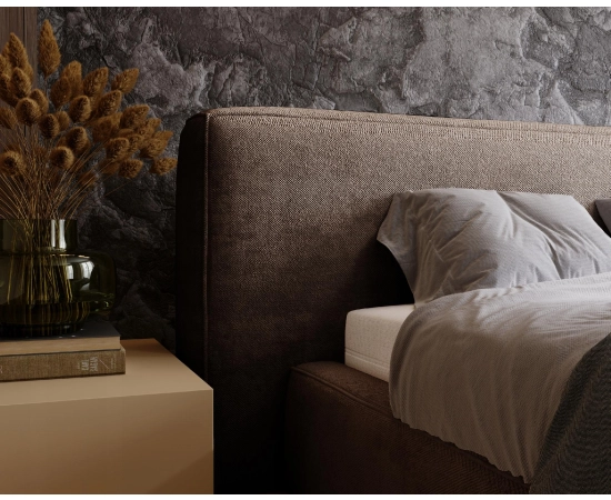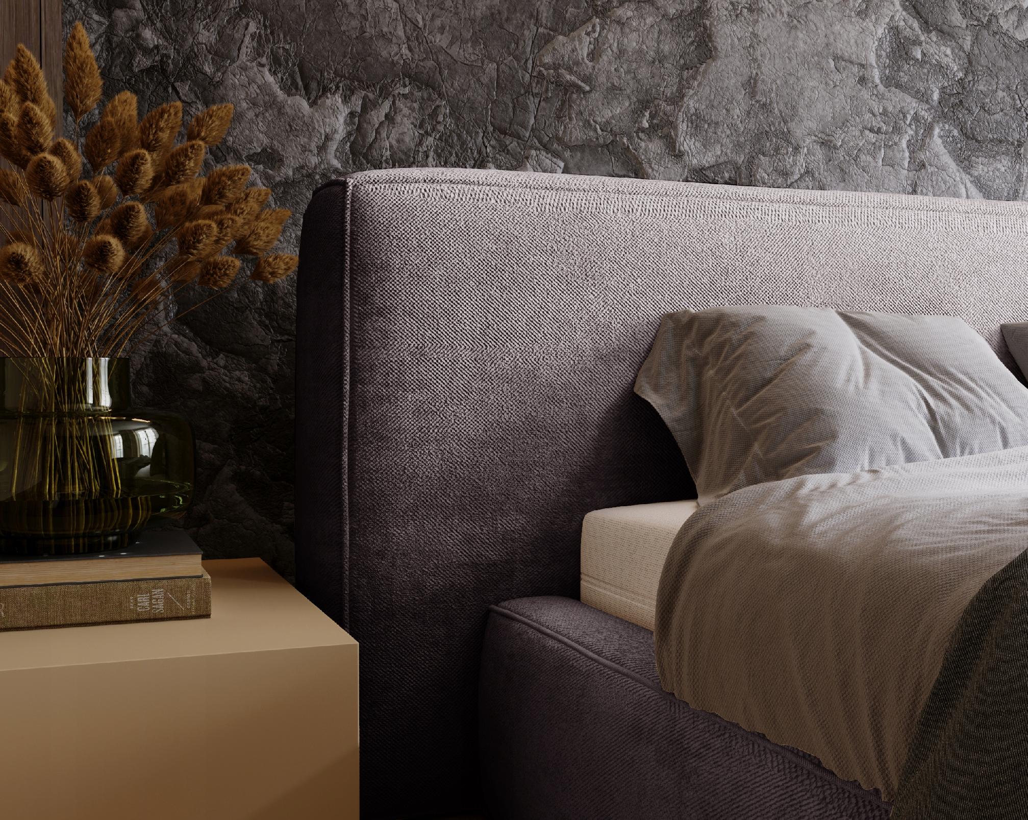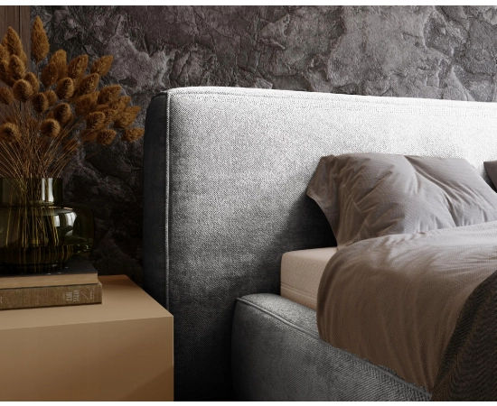 Łóżko tapicerowane Blanko to model o wyjątkowym designu, wyróżnia się szerokim zagłówkiem o prostej grubej bryle, która nadaje mu unikalnego, nowoczesnego charakteru.