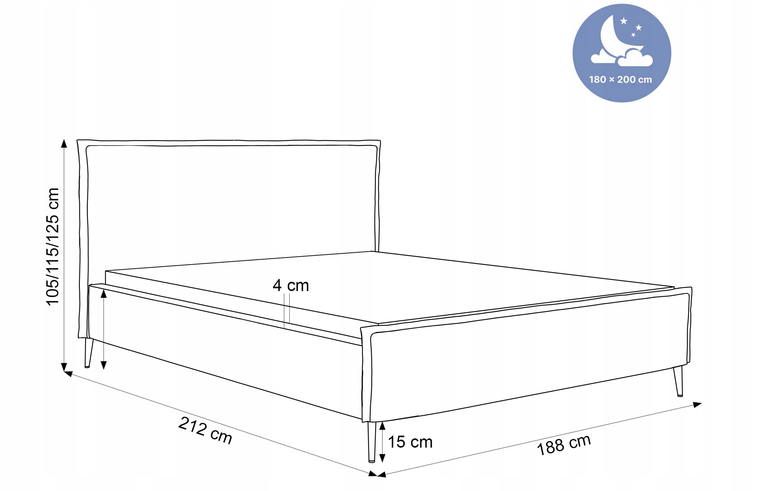 Całość została osadzona na wysokich nogach dostępnych w trzech wariantach kolorystycznych: złotym, czarnym oraz srebrnym, co pozwala dopasować łóżko do indywidualnego stylu wnętrza. Dodatkowym atutem jest praktyczny pojemnik na pościel, który zapewnia funkcjonalne miejsce do przechowywania.
