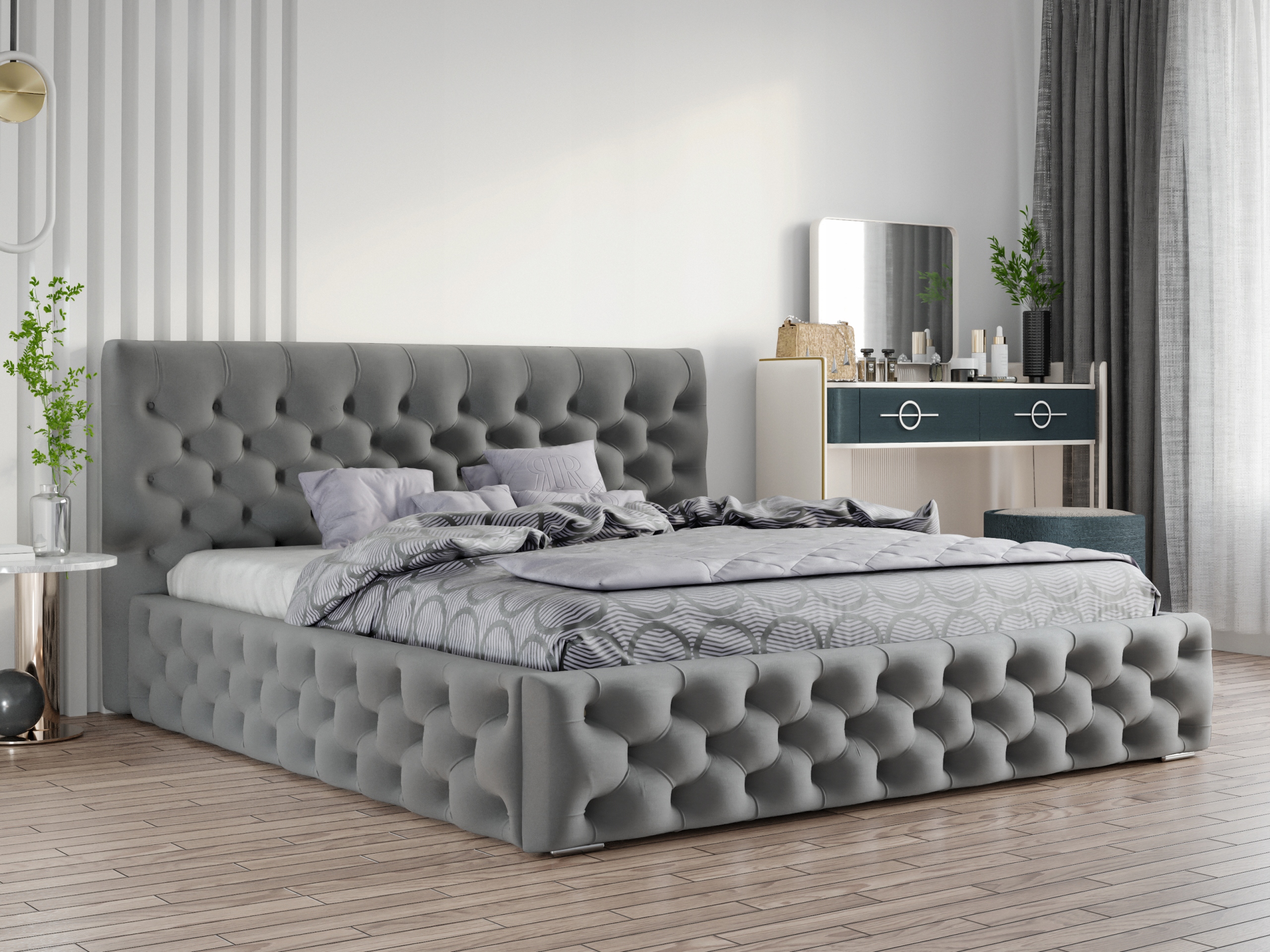 Łóżko z pojemnikiem 180x200 Venom jest modelem z kolekcji premium wykonanym w pięknym pikowanym stylu glamour. Gęste pikowanie materiałowymi guzikami tworzą unikatową całość. Łóżko sypialniane czerpie ze stylu chesterfield wszystko co najpiękniejsze do twojej sypialni. Łóżko tapicerowane 180x200 Venom prezentuje się niezwykle królewsko. Jednym z najważniejszych atutów tego łóżka jest duży pojemnik na pościel, umieszczony wewnątrz ramy.