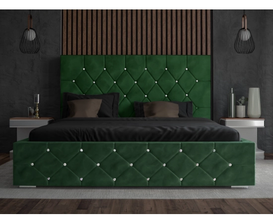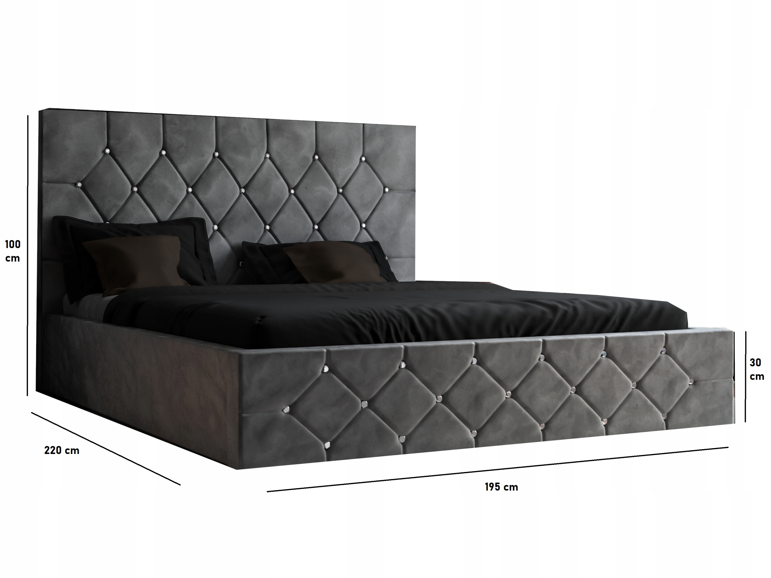 Jest idealnym wyborem dla osób poszukujących designerskiego i wyrafinowanego wnętrza sypialni. Jednym z wyróżniających elementów łóżka glamour Crystal jest wysoki zagłówek. Jest on ozdobiony symetrycznym pikowaniem, które nadaje mu wyjątkowego charakteru. Dodatkowo, na zagłówku umieszczone są kryształowe guziki, które dodają mu blasku i prestiżu.