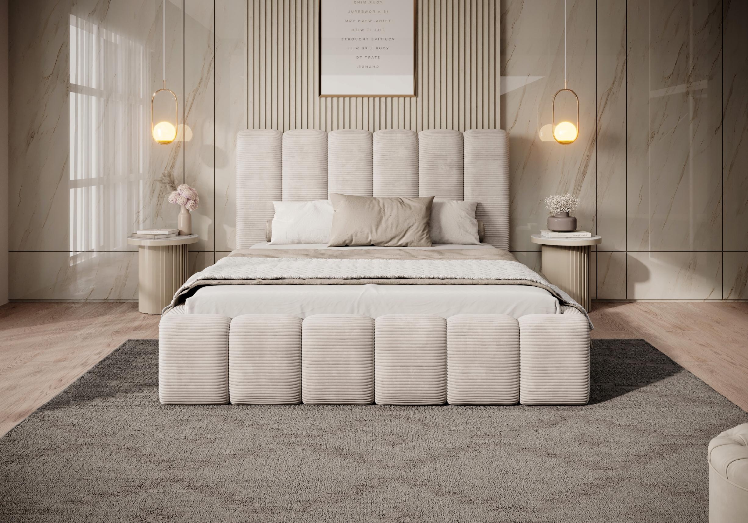 Dream to łóżko tapicerowane, które zniewala swoim wyglądem już od pierwszej sekundy. Wysokie wezgłowie wraz z bokami i przodem mebla zostało przeszyte pionowymi wypukłymi liniami z przeszyć. Łóżko sypialniane 160 Dream to niezwykle wygodne i komfortowe łóżko. Jego niepowtarzalny design, szczególnie przykuwa uwagę. Uczucie miękkości zapewnia doskonałe chwile relaksu.