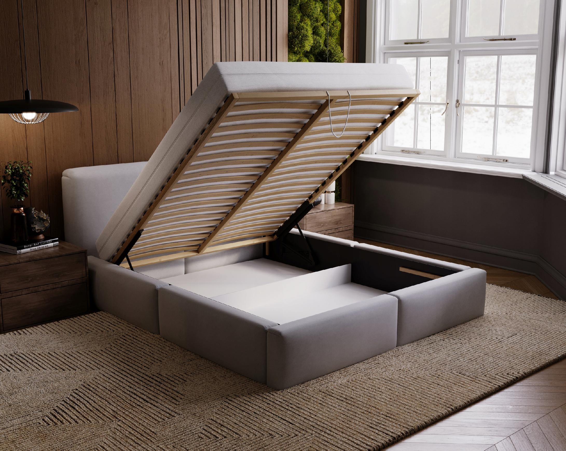 Dzięki wbudowanemu pojemnikowi na pościel, możesz skutecznie wykorzystać przestrzeń pod łóżkiem, przechowując pościel, poduszki i inne przedmioty w porządku i z dala od wzroku. Rama łóżka i wezgłowie gwarantują nie tylko estetyczny wygląd, ale także trwałość na lata użytkowania. Łóżko tapicerowane do sypialni 140x200 Diego jest wykonane z dbałością o każdy detal. Dostępne jest w różnych rozmiarach oraz kolorach, co pozwala dostosować ten model do praktycznie każdej sypialni.