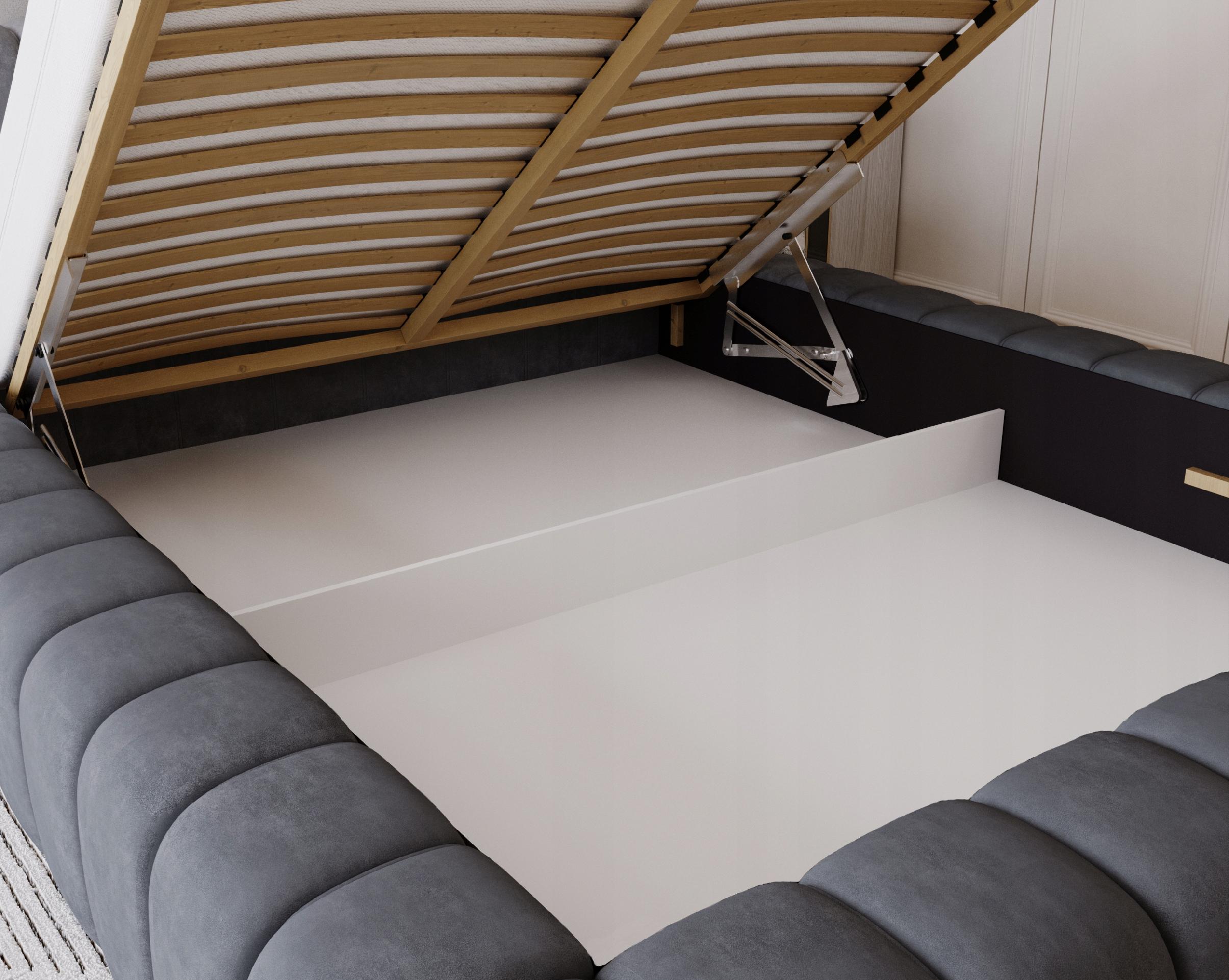 Dzięki wbudowanemu pojemnikowi na pościel, możesz skutecznie wykorzystać przestrzeń pod łóżkiem, przechowując pościel, poduszki i inne przedmioty w porządku i z dala od wzroku. Rama łóżka i wezgłowie wykonane jest z gładkiego i trwałego weluru o wysokiej jakości, co gwarantuje nie tylko estetyczny wygląd, ale także trwałość na lata użytkowania. Dostępne jest w różnych rozmiarach oraz kolorach, co pozwala dostosować ten model do praktycznie każdej sypialni. Zapraszamy do zakupu naszego łóżka do sypialni Infinity.