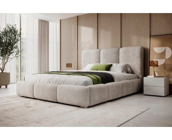 Łóżko z grubej pianki Bubble zostało zaprojektowane z myślą o wygodzie i estetyce, to łóżko z pewnością przyciągnie Twoją uwagę. Stylowe wysokie wezgłowie łóżka sypialnianego Bubble jest zaprojektowane w taki sposób, aby idealnie współgrać z zaokrąglonymi kwadratowymi kształtami podstawy. Ta spójna kompozycja dodaje elegancji i harmonii. Obłe kształty całej konstrukcji podkreślają nowoczesny charakter mebla, co sprawia, że jest ono prawdziwą ozdobą wnętrza. Jednym z najważniejszych atutów tego łóżka jest pojemnik na pościel, umieszczony wewnątrz ramy. To praktyczne rozwiązanie, które pozwala na przechowywanie kołder, poduszek i pościeli, utrzymując je w nieskazitelnym porządku i gotowości na każdą okazję.