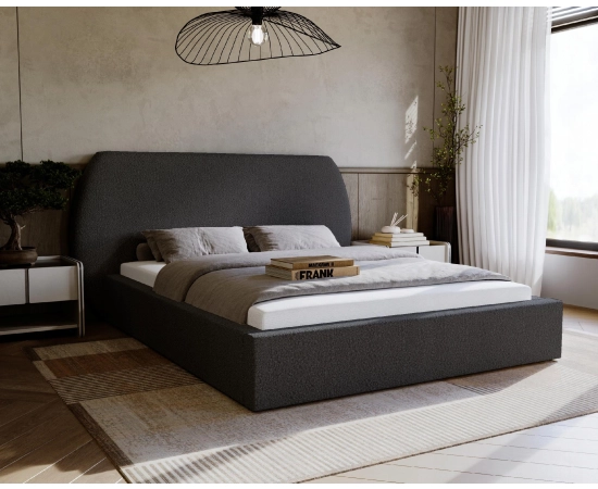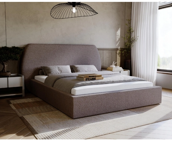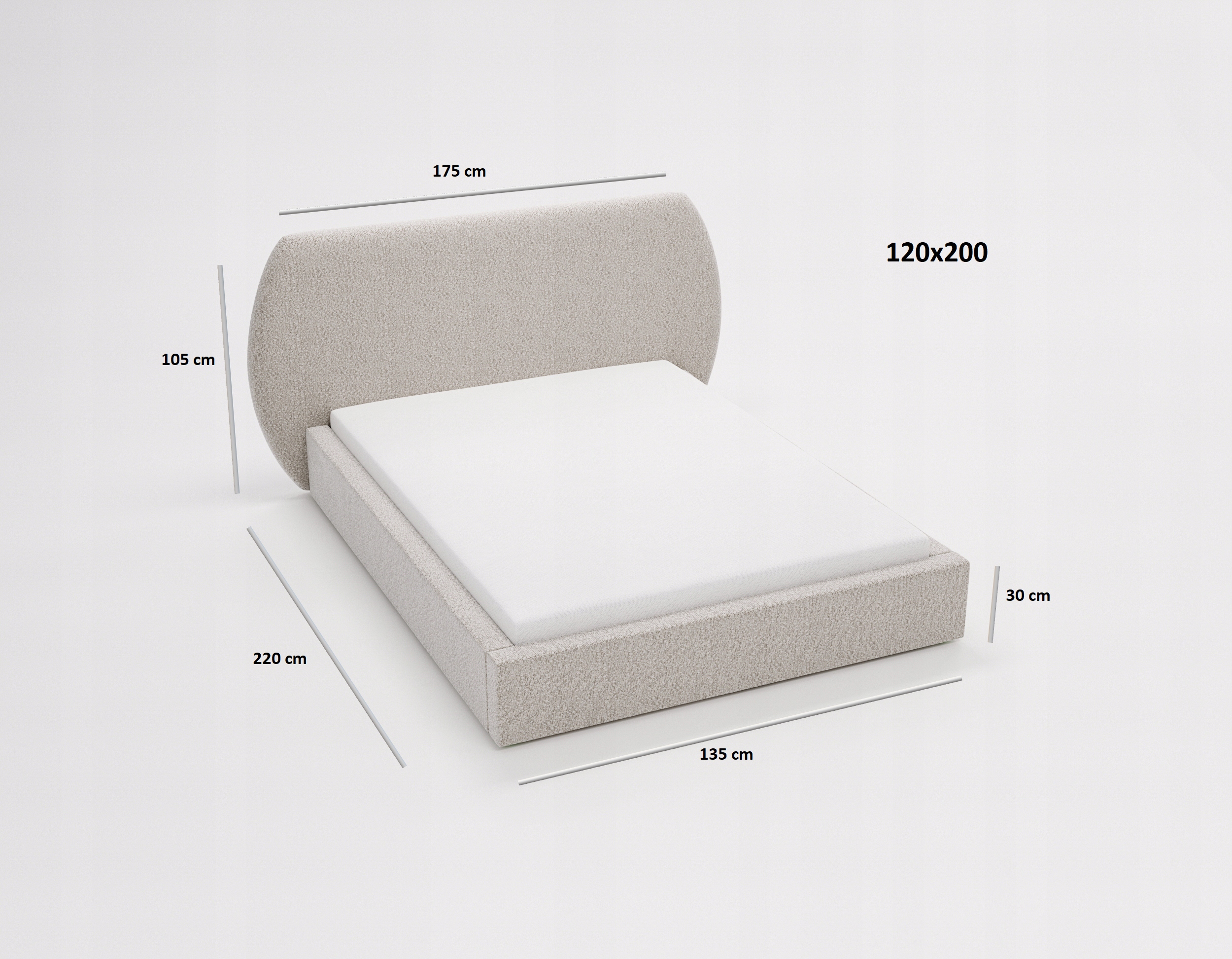 Łóżko Harry przykuwa uwagę niebanalnym, zaokrąglonym kształtem wezgłowia. Zagłówek, jak i całe łóżko, obity jest miękką tkaniną boucle, dzięki czemu, poza naturalnym wyglądem, doskonale sprawdzi się podczas wieczornej lektury czy niedzielnego śniadania w łóżku, dając komfortowe oparcie Twoim plecom. Łóżko Harry posiada drewniany stelaż, który po podniesieniu ku górze, tworzy obszerny pojemnik na pościel wyściełany drewnianymi listwami oraz niezwykle wytrzymałą płytą HDF.