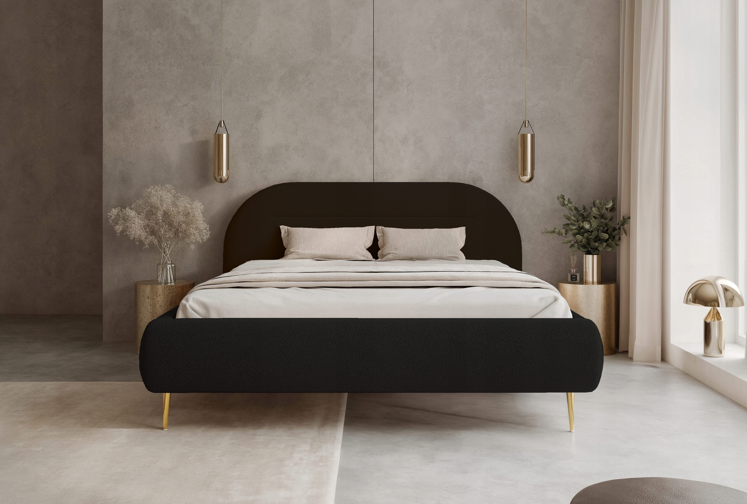 Model Apolline II osadzony jest na metalowych nogach dostępnych w trzech wariantach kolorystycznych: czarnym, złotym oraz srebrnym, co pozwala dopasować łóżko do różnych aranżacji wnętrz.