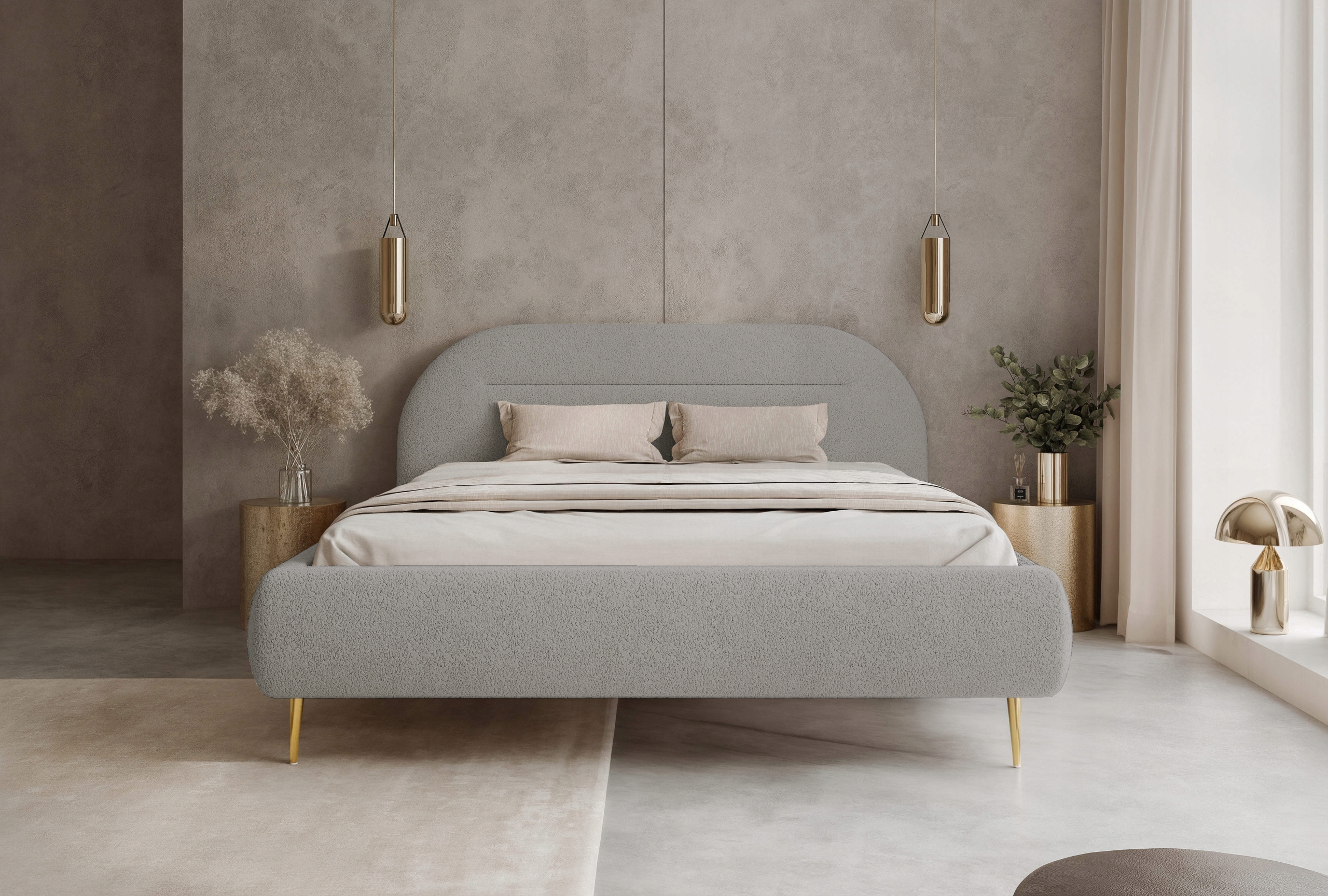 Łóżko tapicerowane Apolline II to nowoczesne i eleganckie łóżko sypialniane 140x200, które wyróżnia się modnym półokrągłym wezgłowiem oraz subtelnie obłą ramą, nadającą wnętrzu lekkości i przytulnego charakteru. Model został obity miękką, przyjemną w dotyku tkaniną pluszową Monte, która podkreśla jego stylowy wygląd.