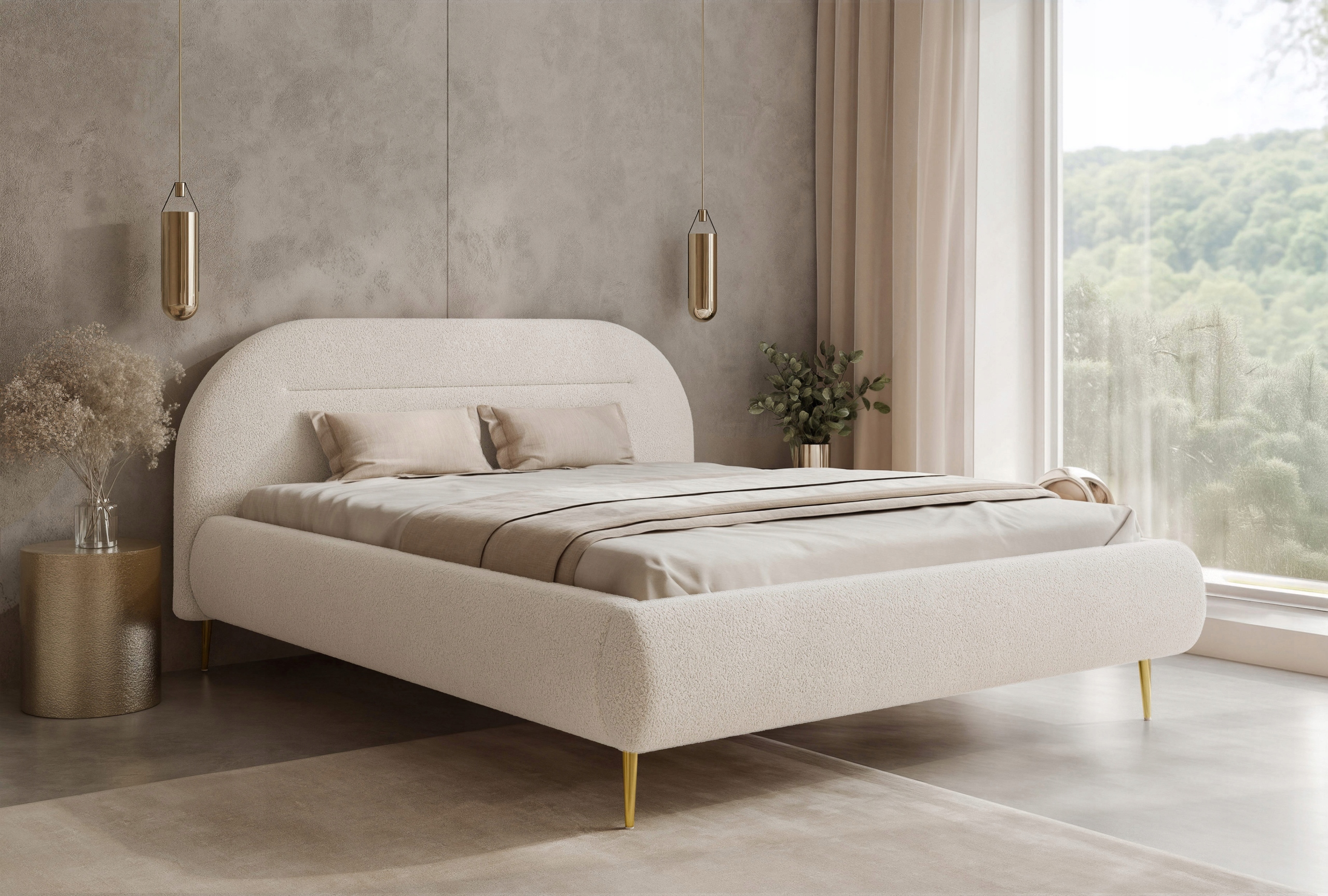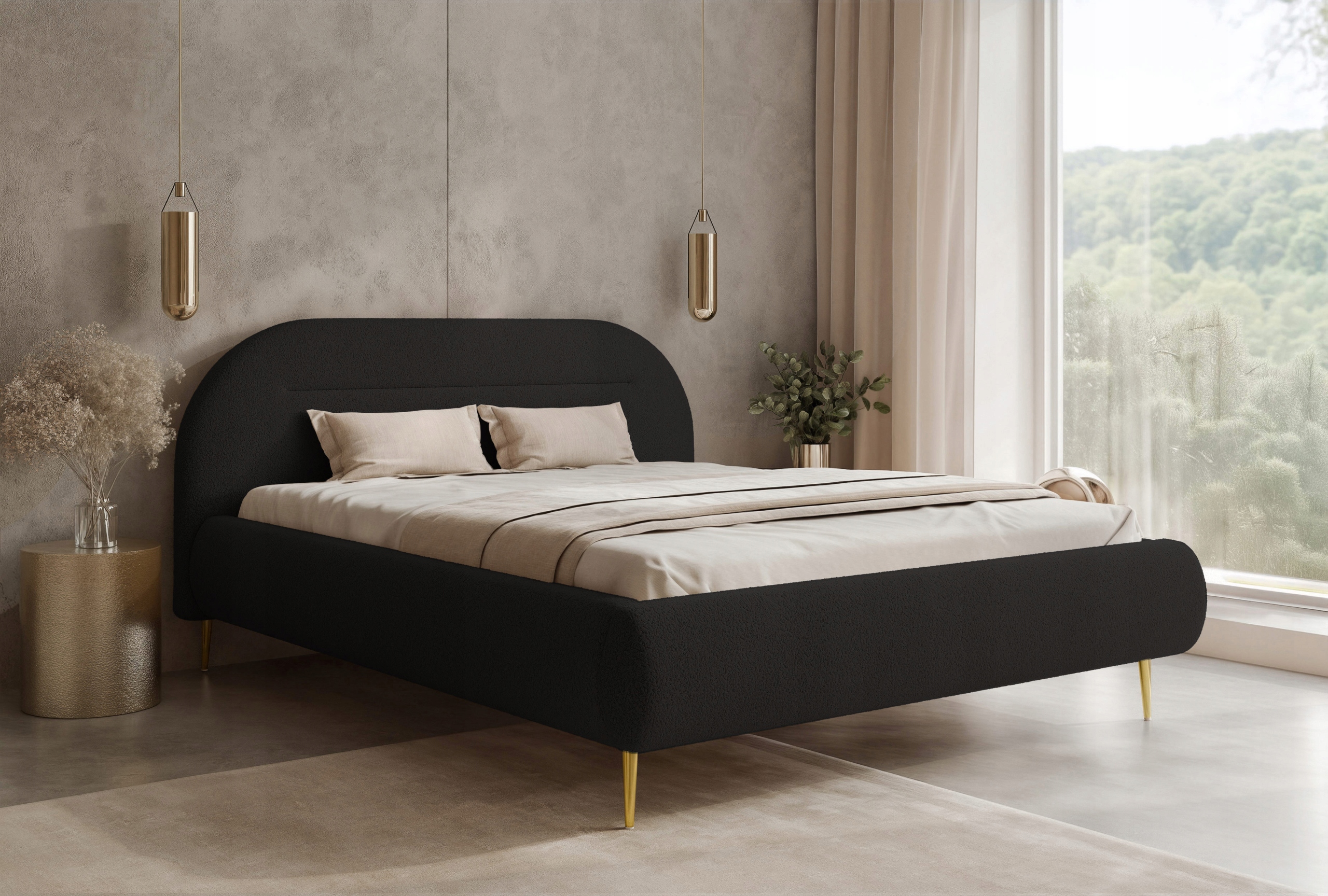 Model Apolline II osadzony jest na metalowych nogach dostępnych w trzech wariantach kolorystycznych: czarnym, złotym oraz srebrnym, co pozwala dopasować łóżko do różnych aranżacji wnętrz.