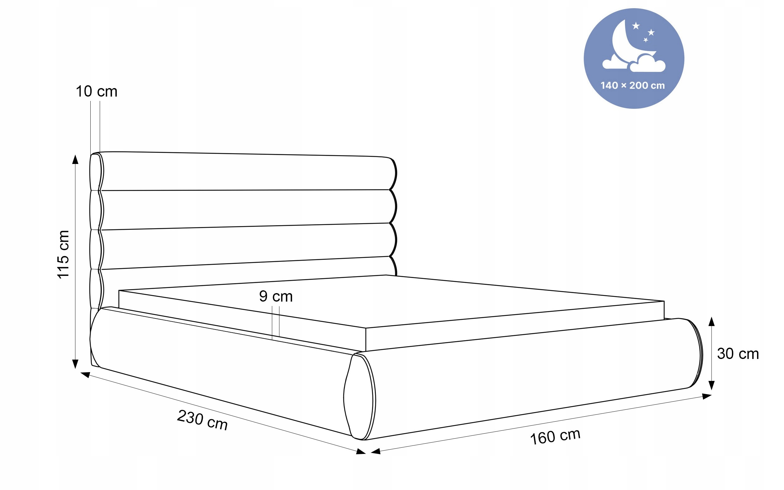 Łóżko sypialniane 140 Marbela to propozycja dla osób ceniących nowoczesny design, wygodę i dopracowane detale. Charakterystyczne poziome półwałki na wezgłowiu oraz obłe kształty nadają mu eleganckiego wyglądu, a całość prezentuje się lekko i stylowo.