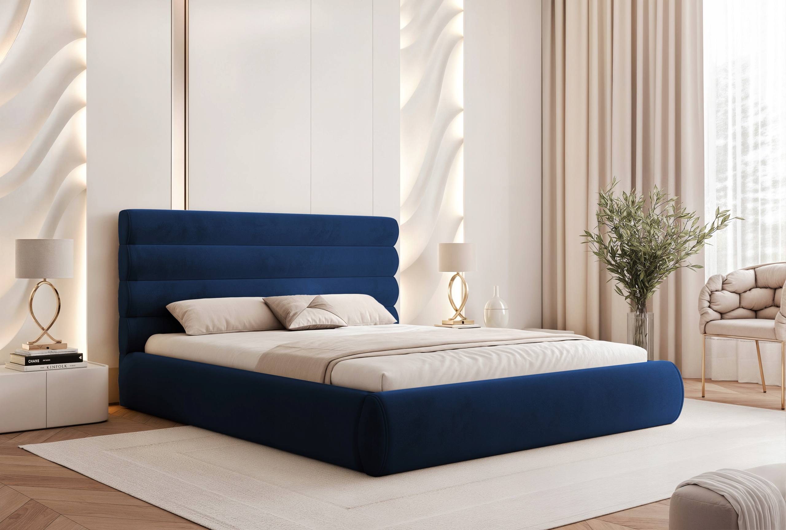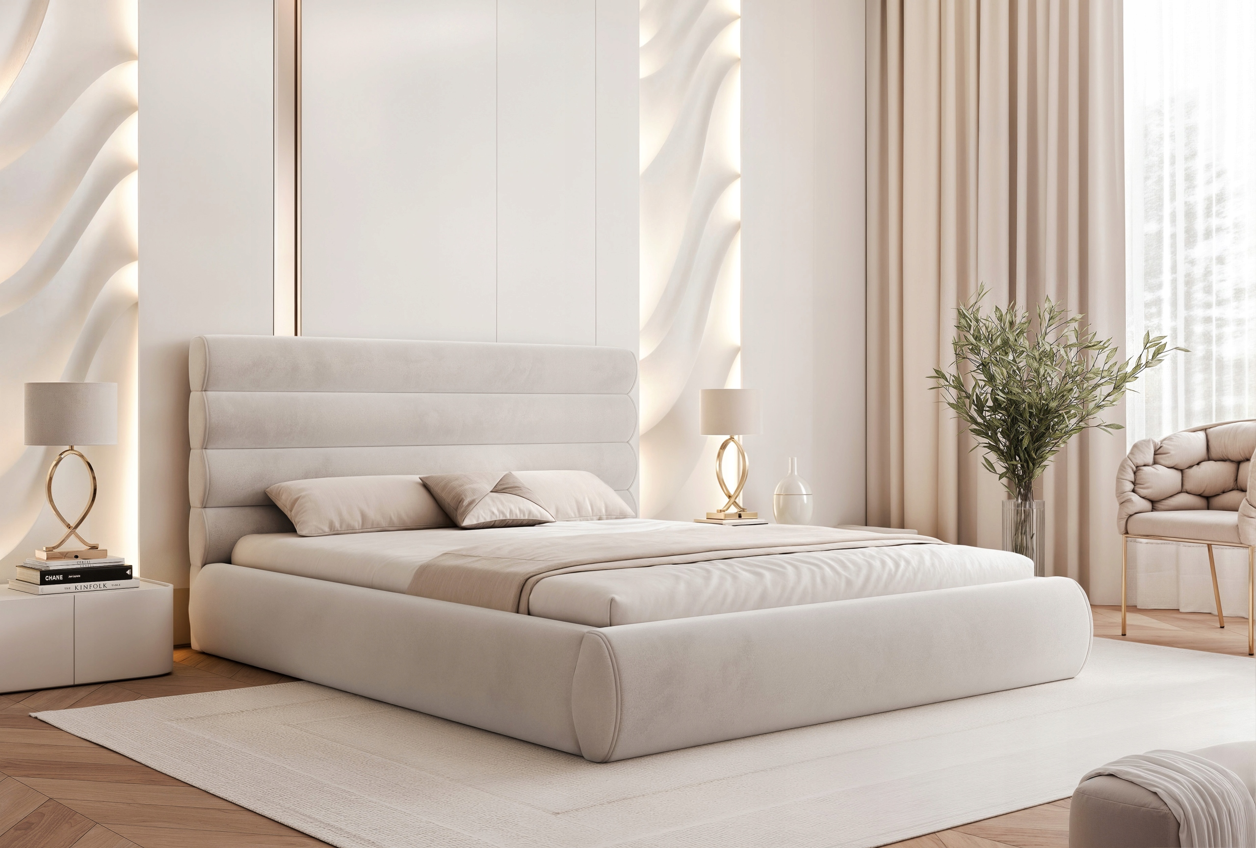 Łóżko sypialniane 160 Marbela to propozycja dla osób ceniących nowoczesny design, wygodę i dopracowane detale. Charakterystyczne poziome półwałki na wezgłowiu oraz obłe kształty nadają mu eleganckiego wyglądu, a całość prezentuje się lekko i stylowo.