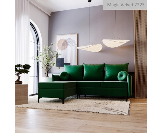 Narożnik rozkładany Lion L idealnie dopasuje się do małych i większych pomieszczeń, nie tracąc jednocześnie nic ze swojej wyjątkowej funkcjonalności. Funkcja spania umożliwi rozkoszowanie się wygodą nie tylko za dnia, ale także w nocy, kiedy to narożnik łatwo można zmienić w komfortowe łóżko. Projektując mebel, nie zapomniano również o dużym pojemniku, który pomieści nie tylko dodatkowe koce czy pościel ale może być również wykorzystany do przechowywania starych książek lub bibelotów. Narożnik do salonu Lion L emanuje lekkością i sprawia, że odpoczynek jest komfortowy i przyjemny.