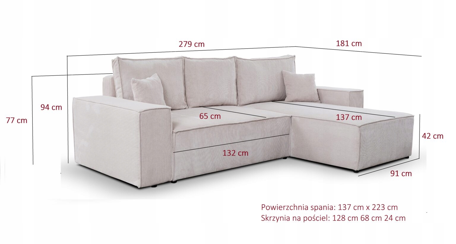 Majorka L to minimalistyczna bryła, która świetnie wpasuje się do wielu aranżacji. Wypełnienie siedziska z miękkiej pianki wysoko elastycznej oraz sprężyn falistych zapewnia niezwykłą wygodę użytkowania. Mebel posiada funkcję spania, która odznacza się automatycznym mechanizmem ułatwiającym przemianę narożnika w łóżko o obszernej powierzchni. Majorka L wyposażona jest również w praktyczny schowek, w którym pomieścisz dodatkową pościel czy inne tekstylia.