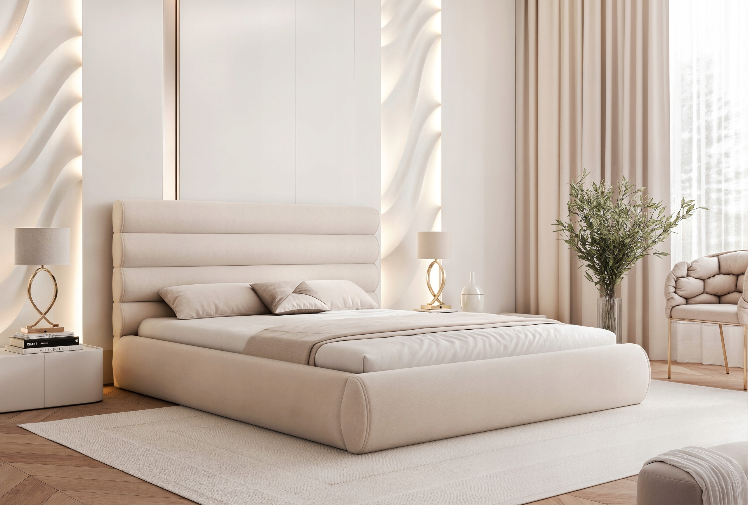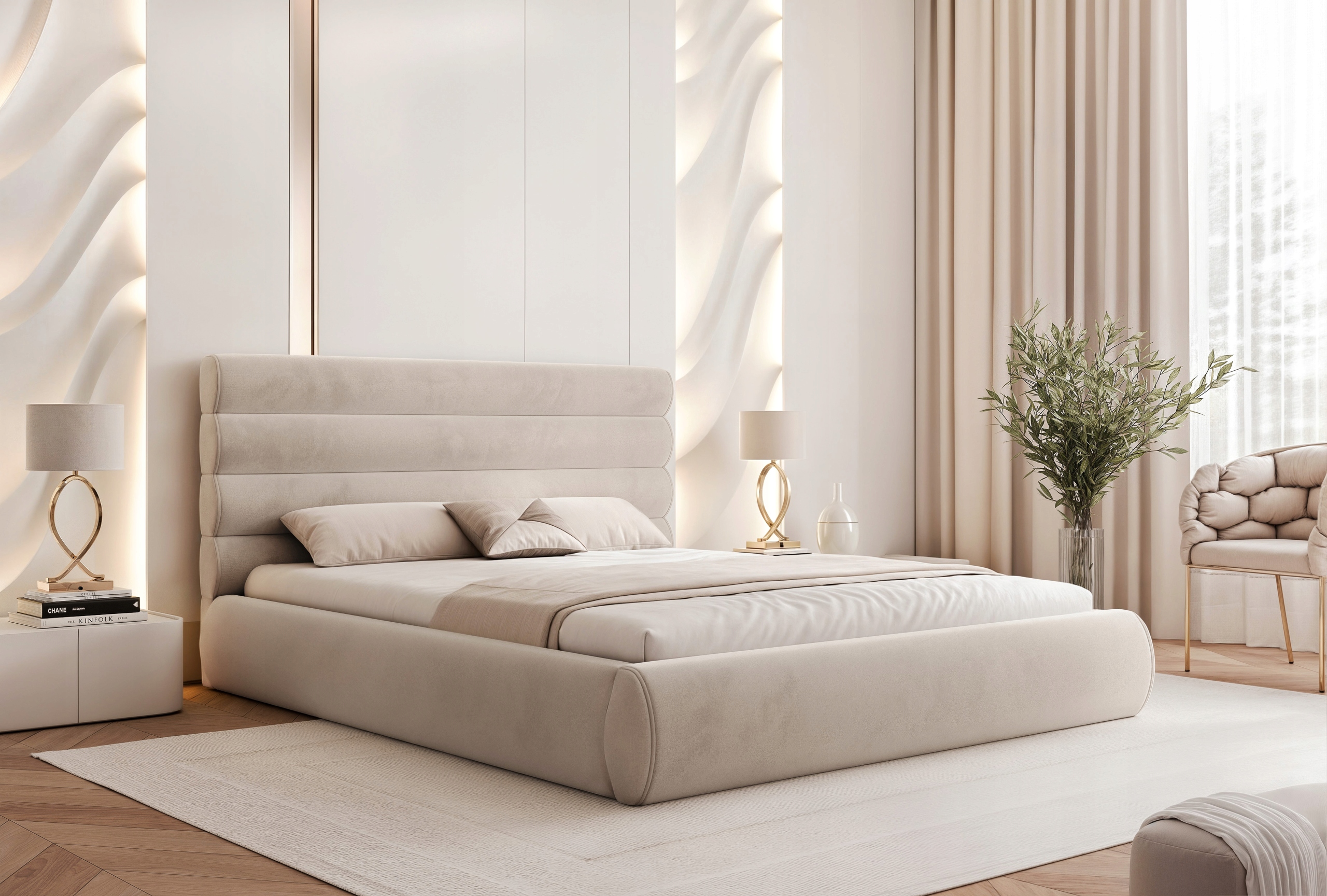 Łóżko sypialniane 200 Marbela to propozycja dla osób ceniących nowoczesny design, wygodę i dopracowane detale. Charakterystyczne poziome półwałki na wezgłowiu oraz obłe kształty nadają mu eleganckiego wyglądu, a całość prezentuje się lekko i stylowo.