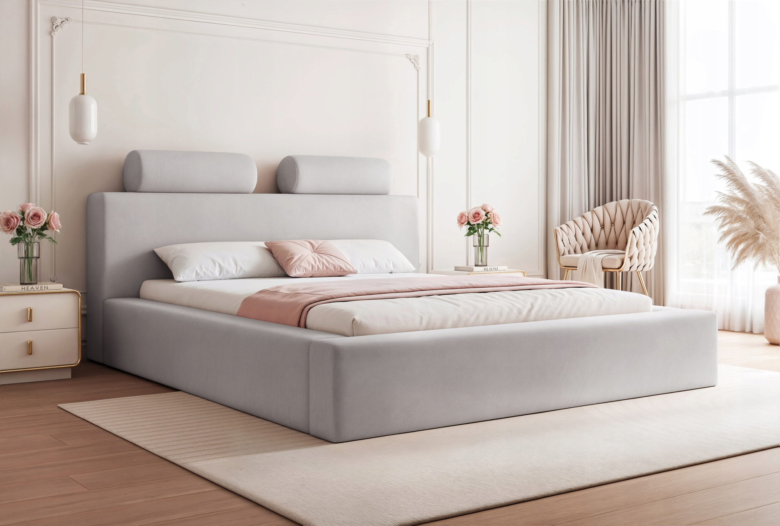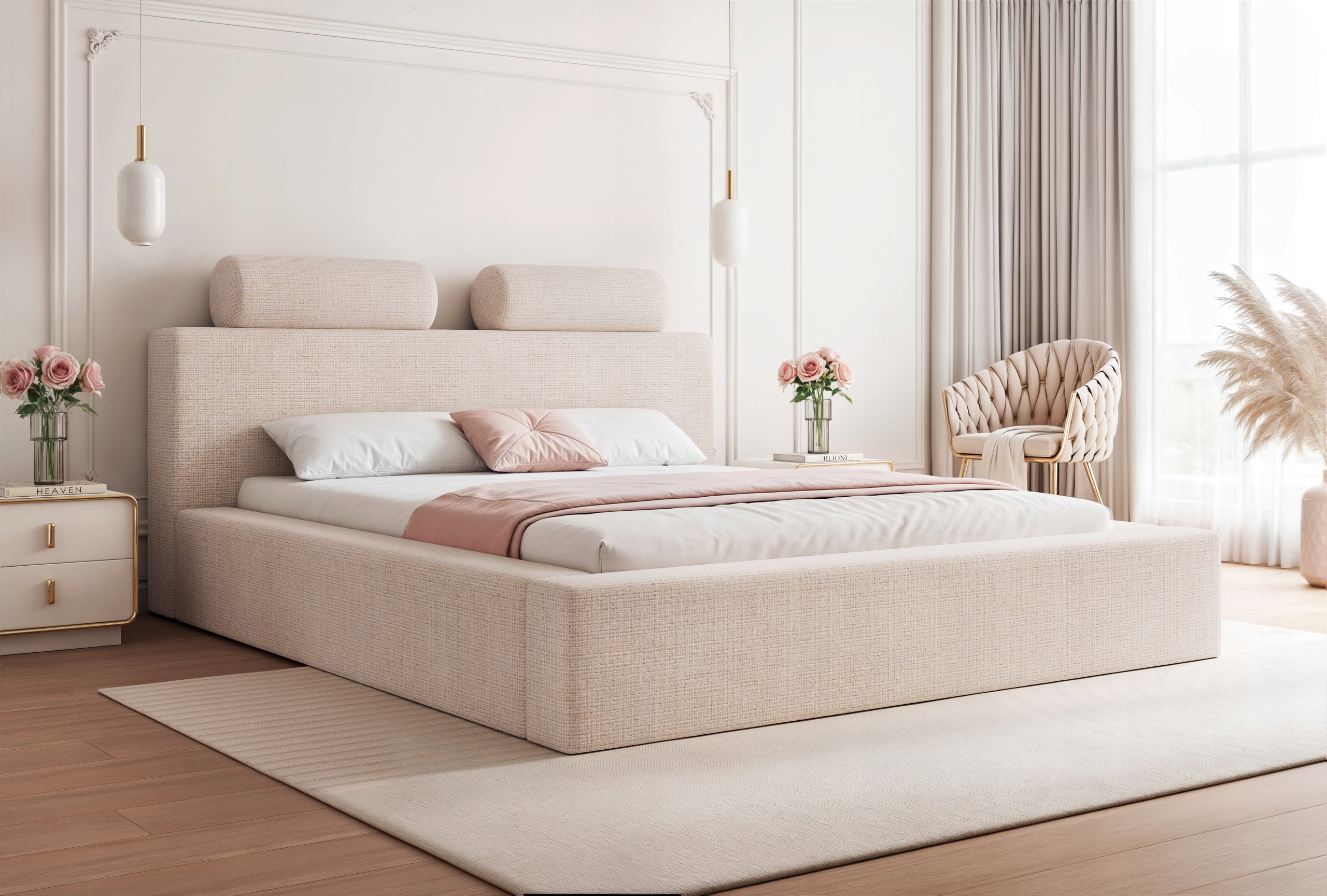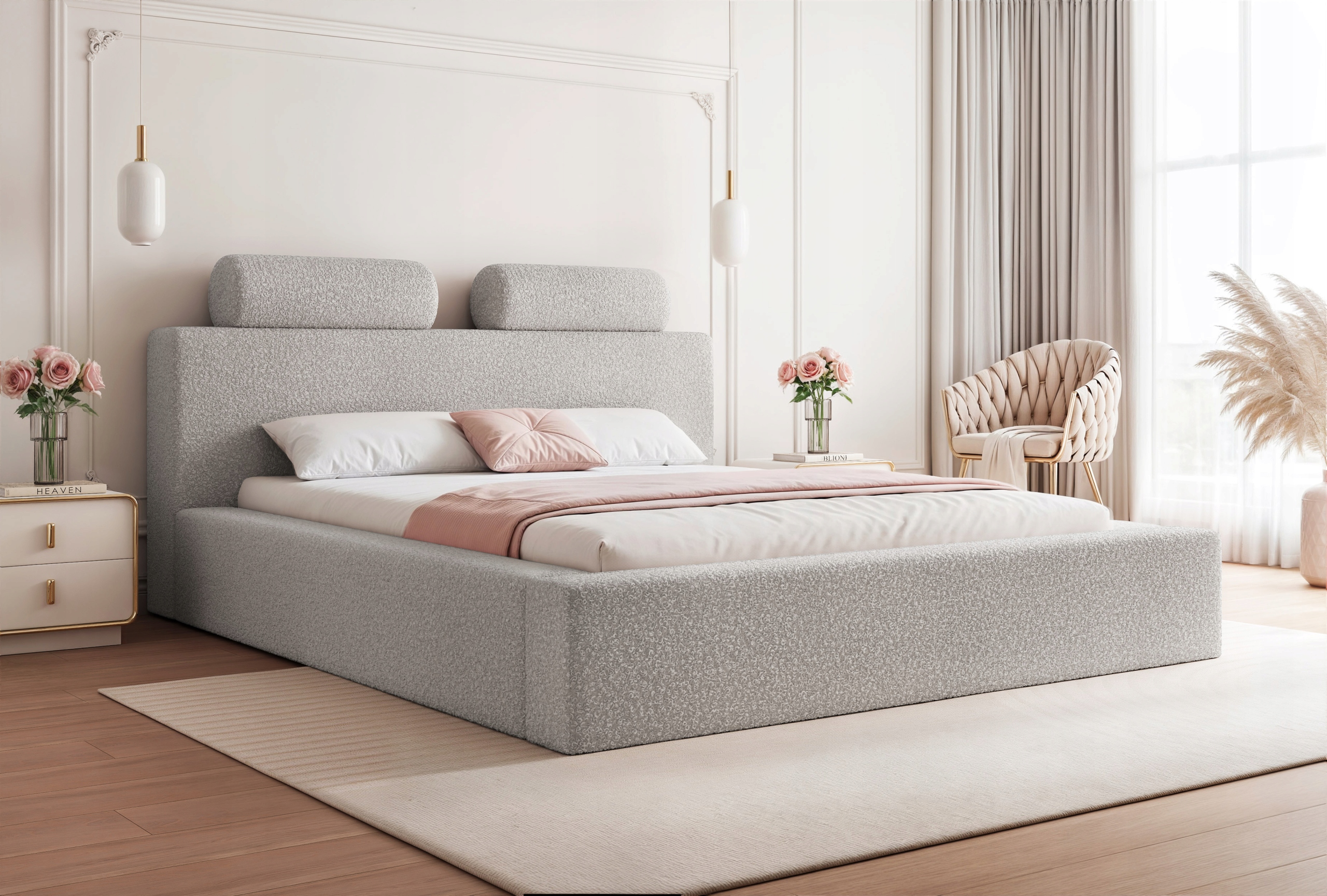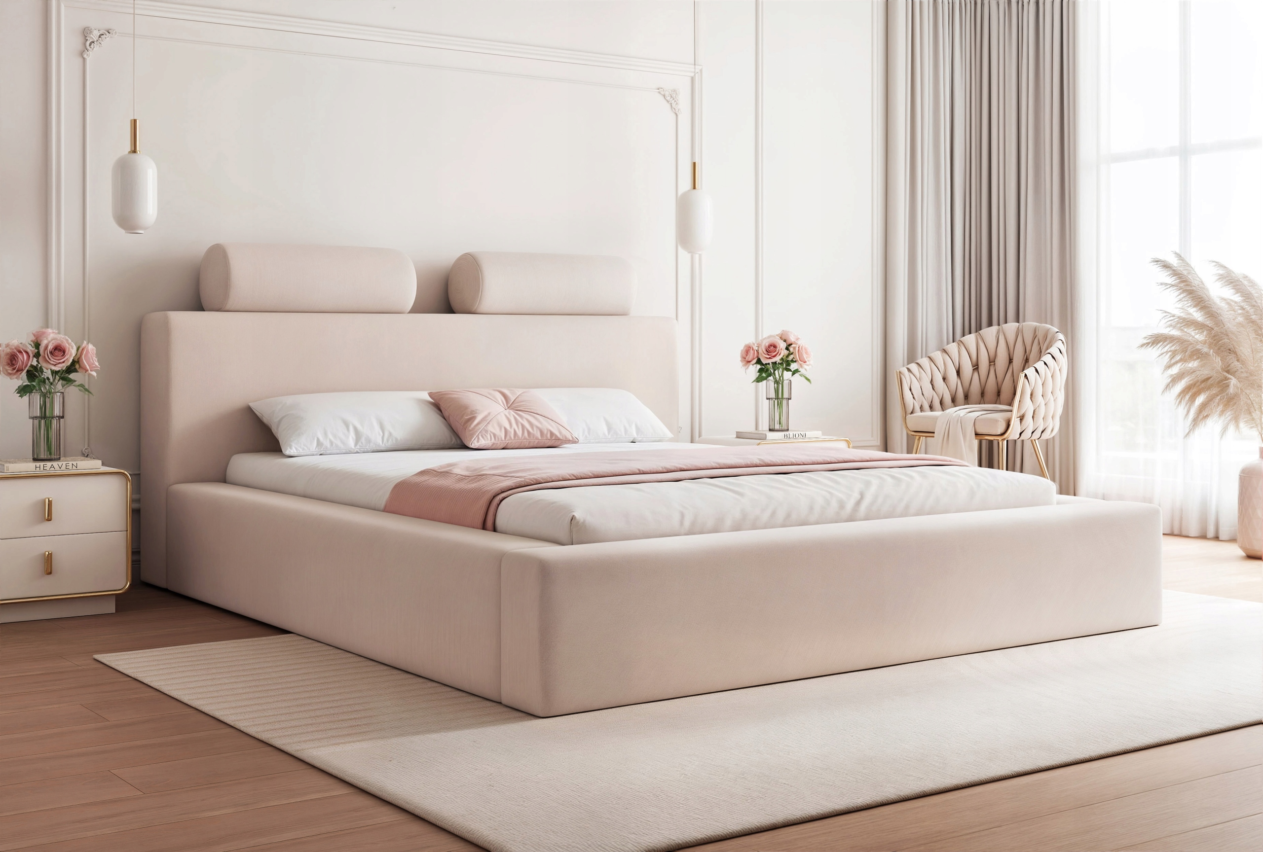 Za wezgłowiem umieszczono dwa miękkie wałki, które zapraszają, by wygodnie oprzeć głowę podczas czytania ulubionej książki czy wieczornego seansu filmowego. Ten drobny detal sprawia, że relaks staje się jeszcze bardziej przyjemny.