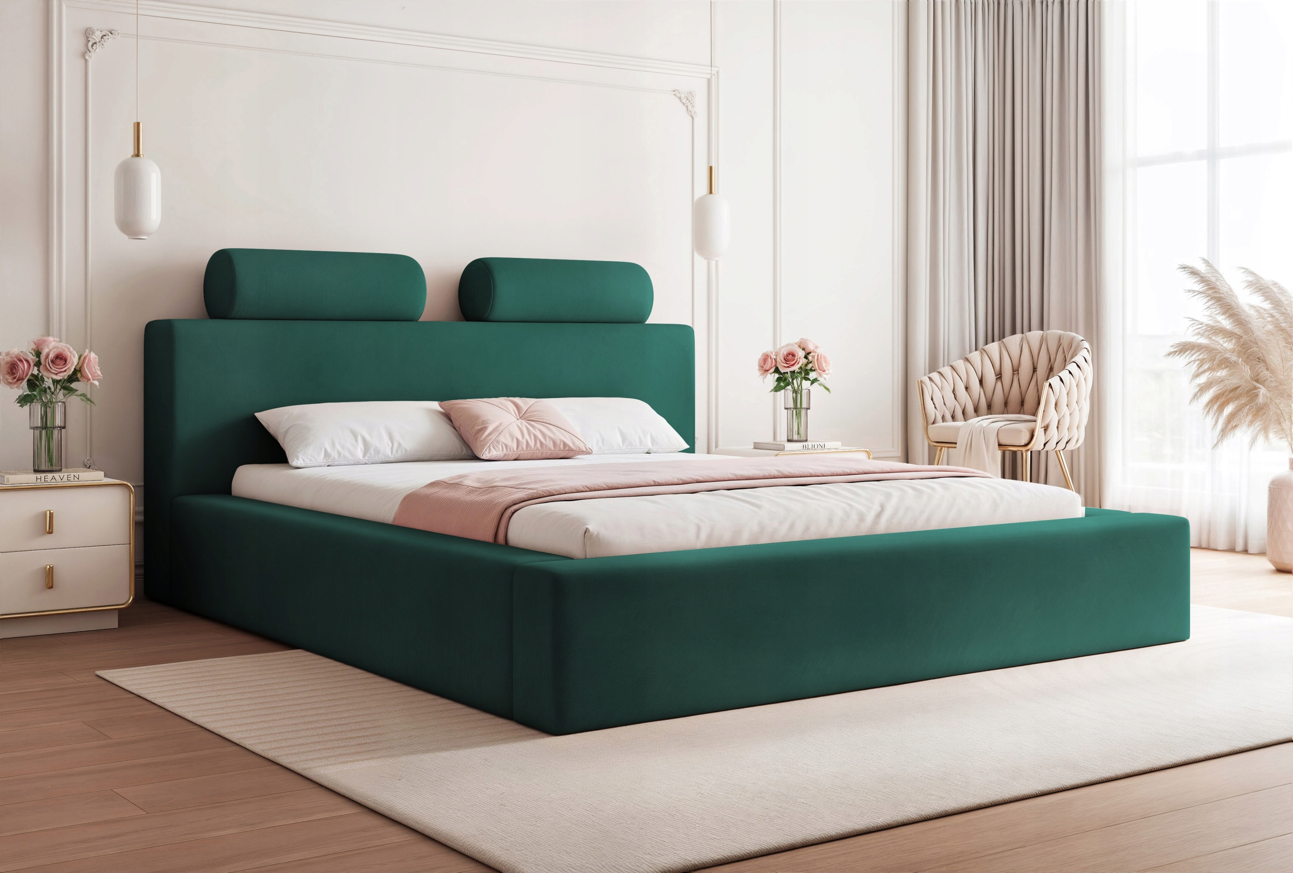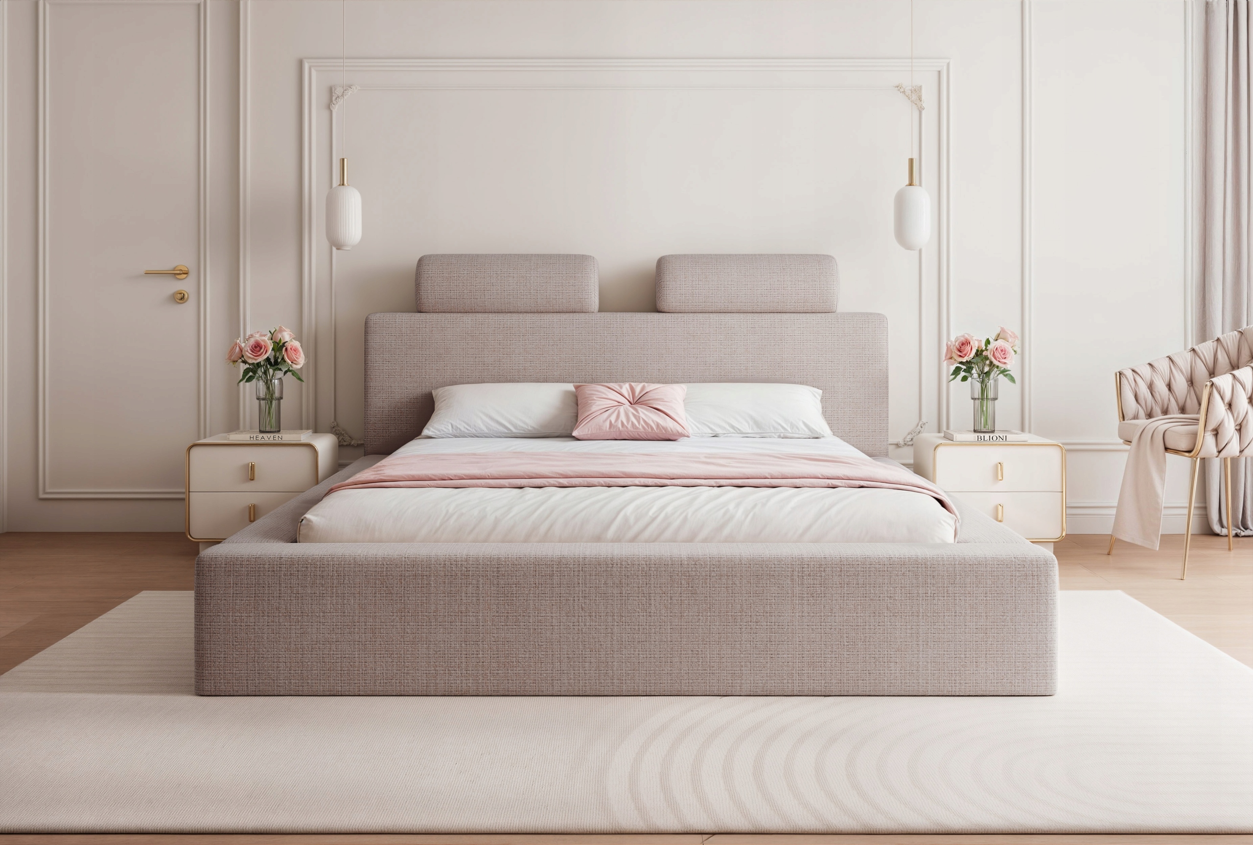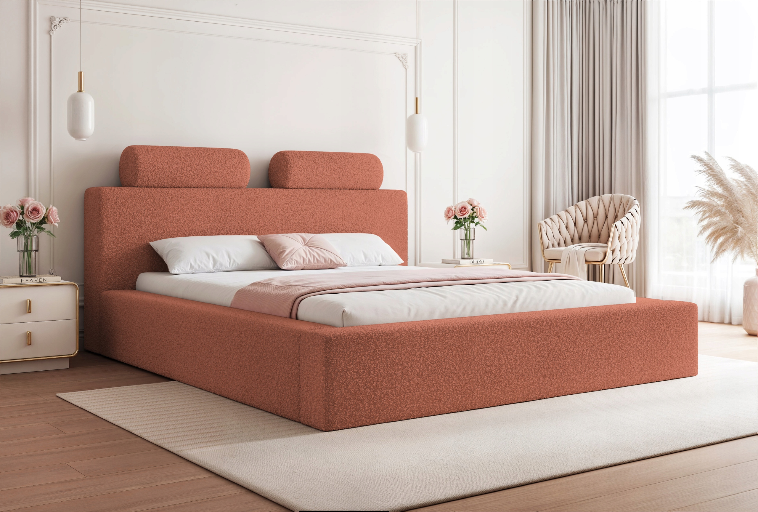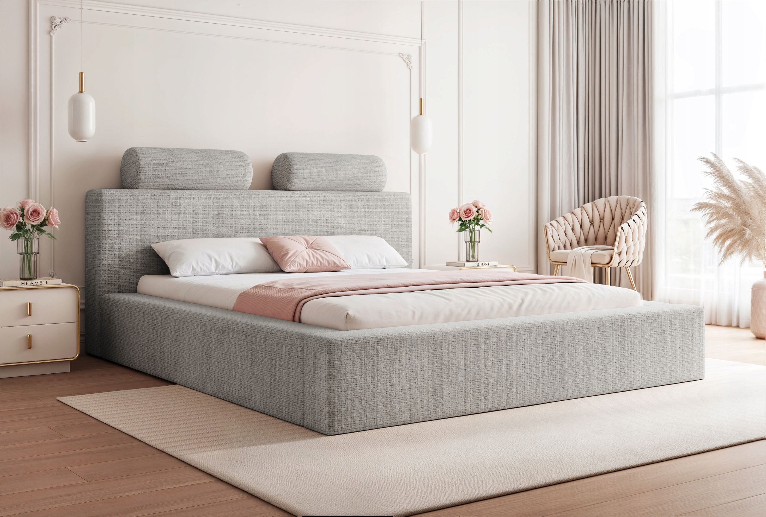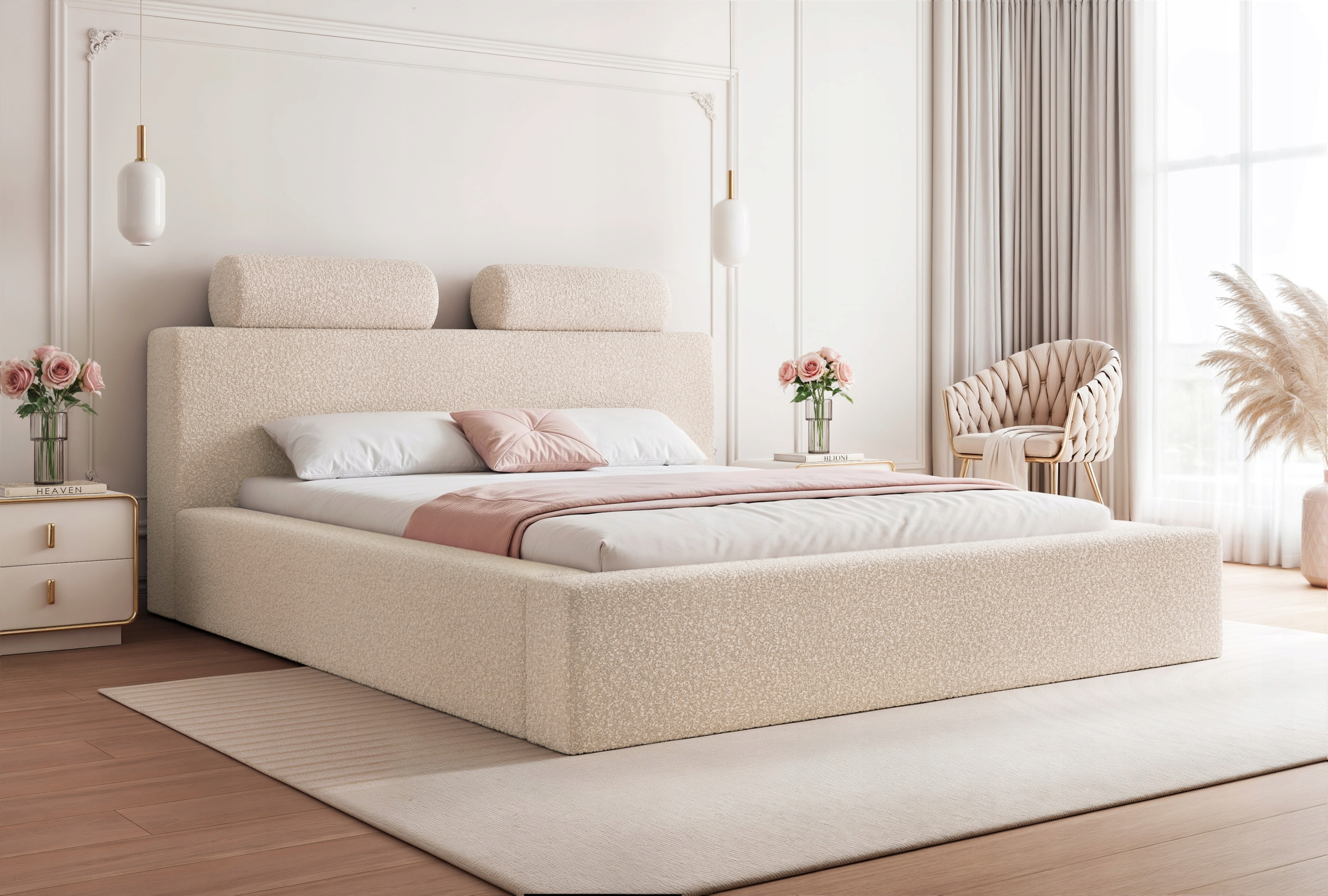 Za wezgłowiem umieszczono dwa miękkie wałki, które zapraszają, by wygodnie oprzeć głowę podczas czytania ulubionej książki czy wieczornego seansu filmowego. Ten drobny detal sprawia, że relaks staje się jeszcze bardziej przyjemny.