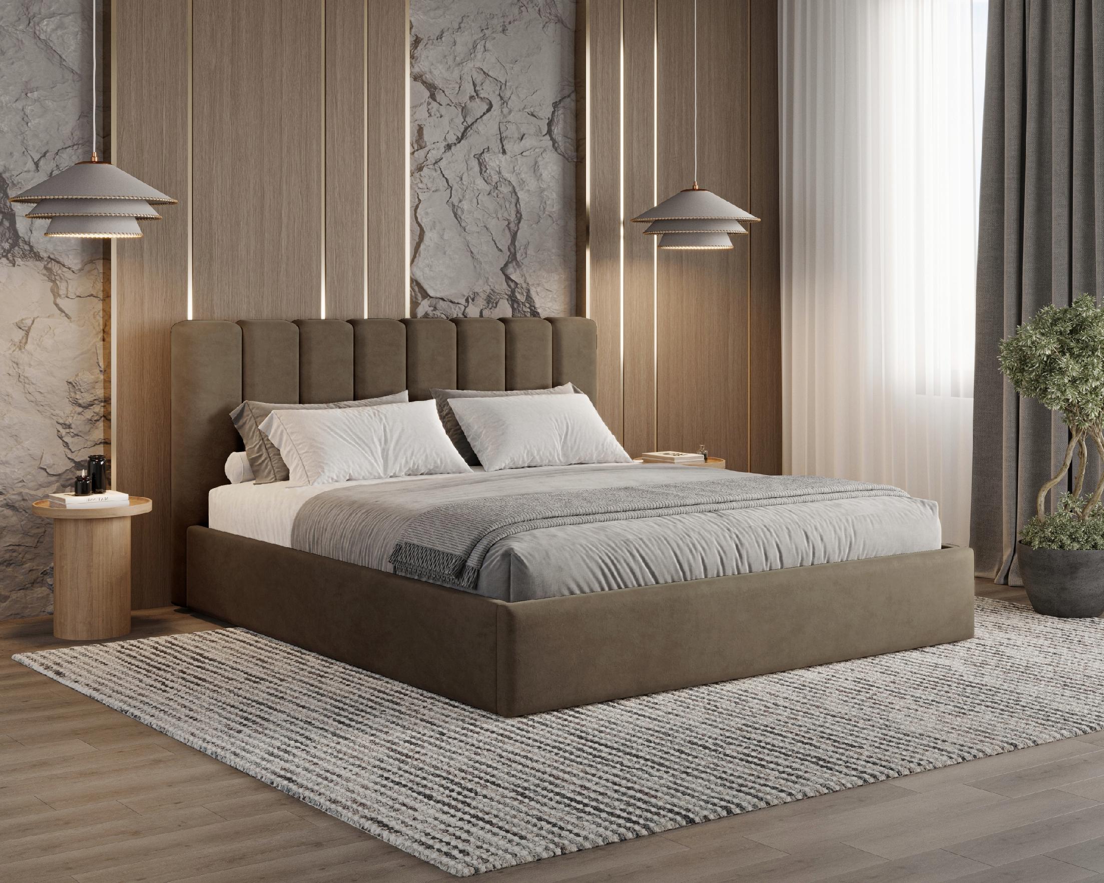 Łóżko tapicerowane Nuvia to wyjątkowe połączenie nowoczesnego stylu, elegancji i komfortu. Dzięki kompaktowej budowie typu Slim, łóżko doskonale wpisuje się nawet w najmniejsze pomieszczenia, zachowując przy tym pełen komfort użytkowania.