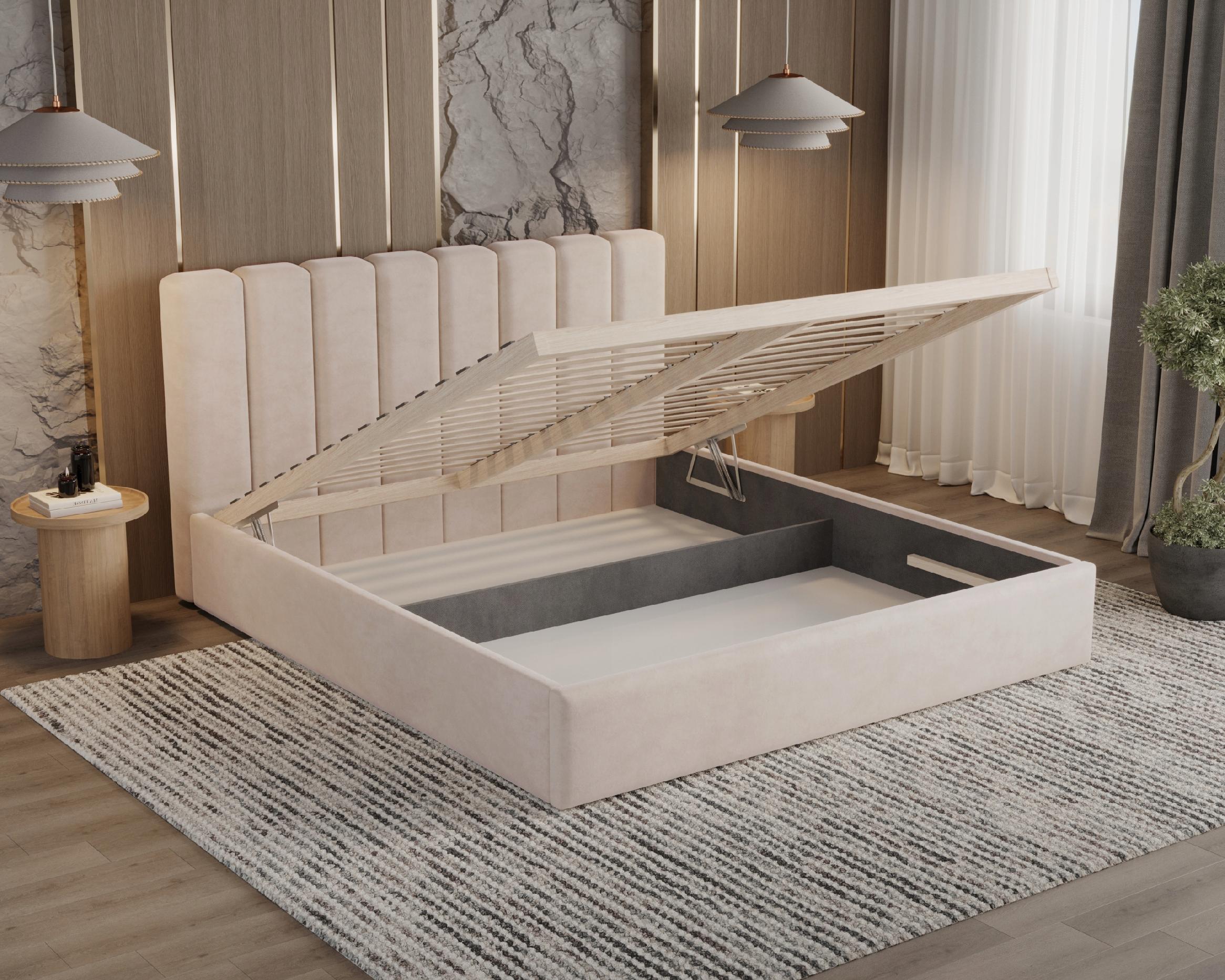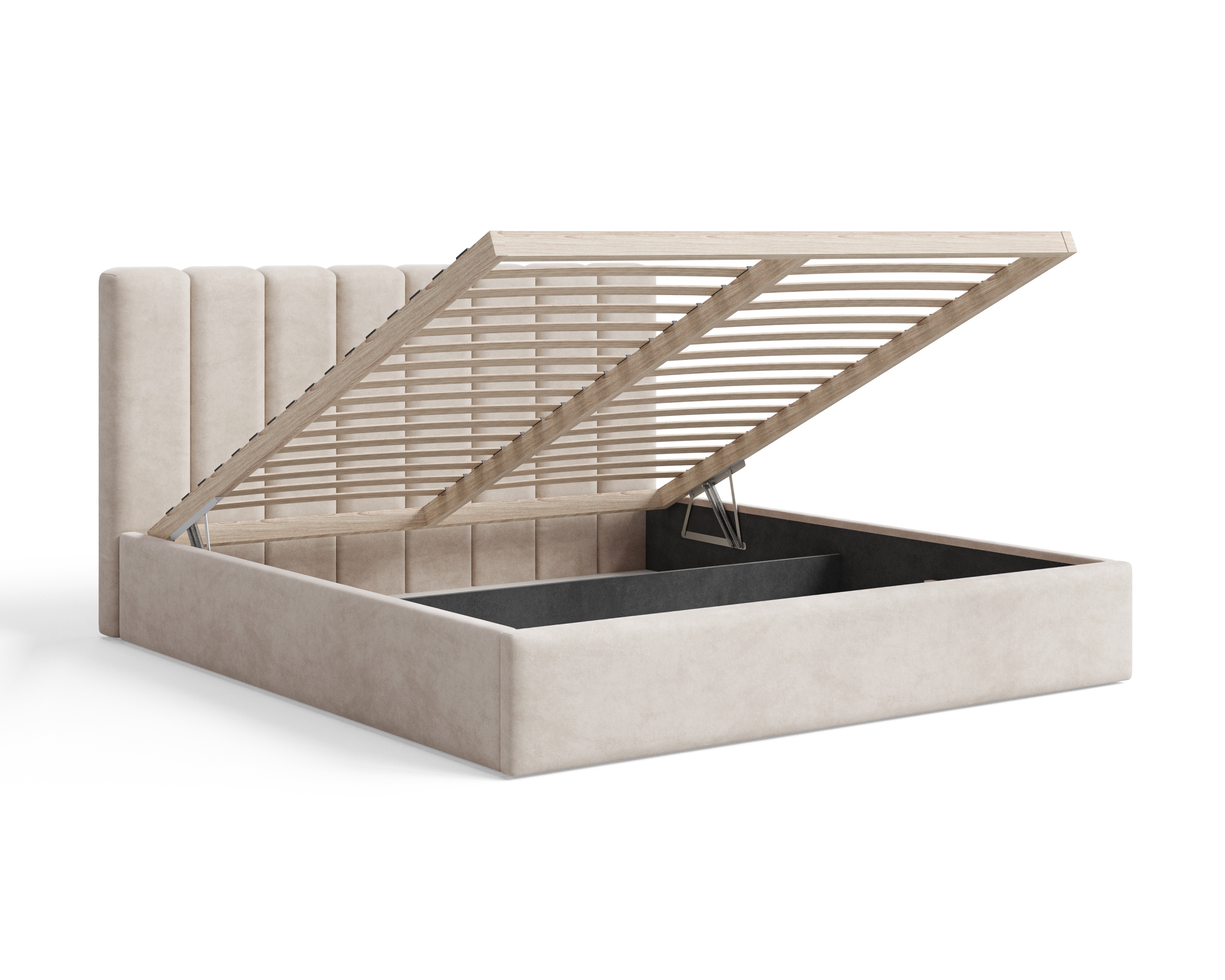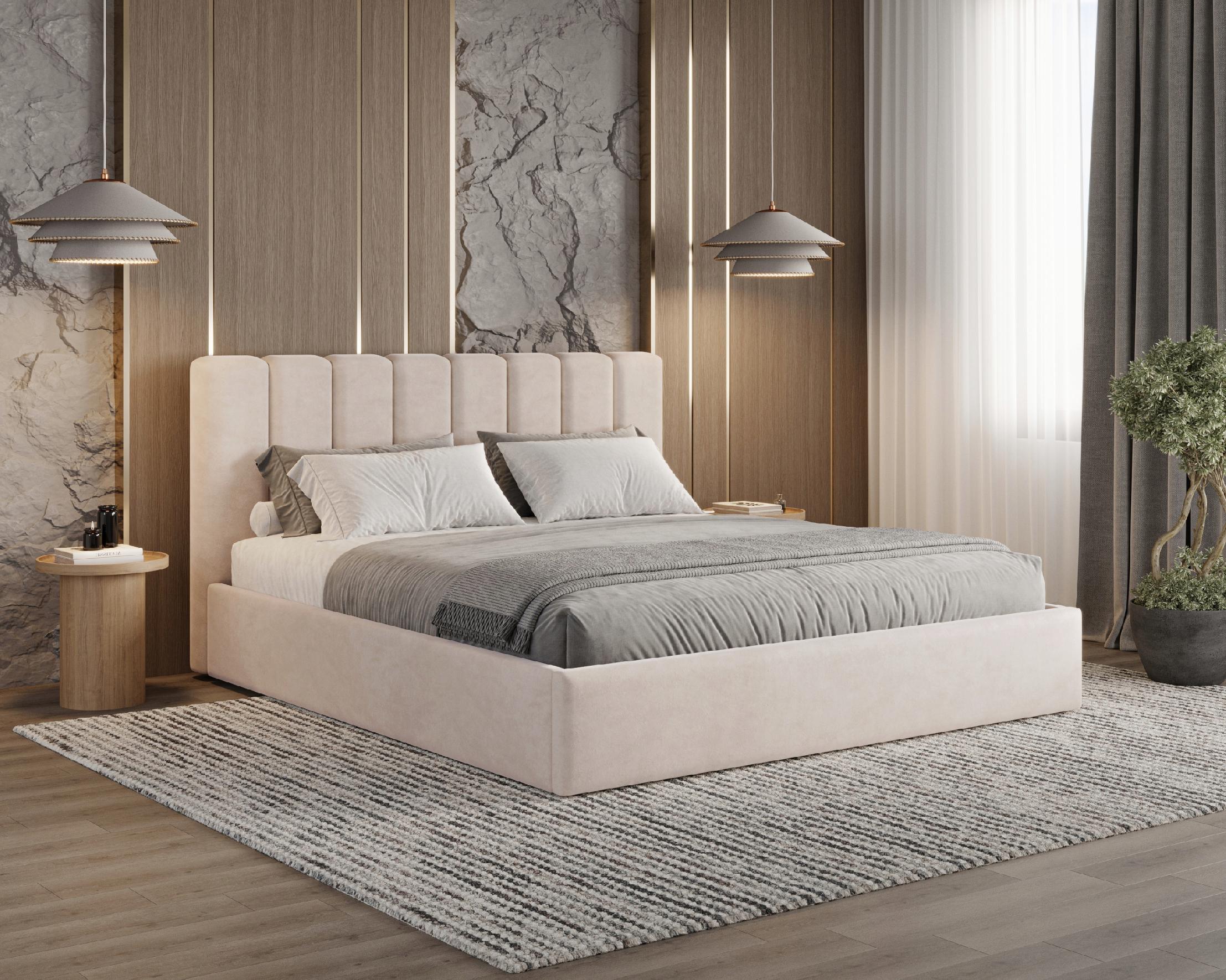 Slim łóżko Nuvia wyróżnia się obłym wezgłowiem z miękkimi, pionowymi pasami, które nadają mu przytulnego i harmonijnego charakteru. Subtelne zaokrąglenia oraz staranne wykończenie sprawiają, że łóżko staje się eleganckim centrum każdej sypialni.