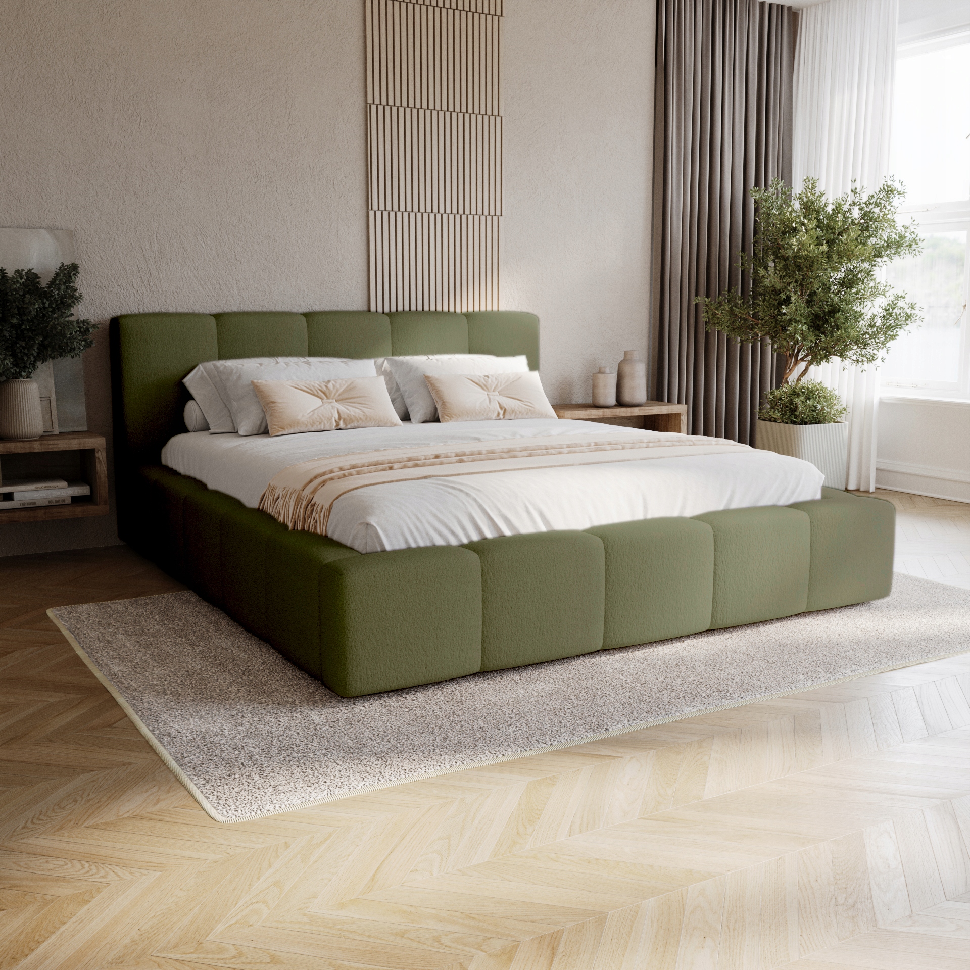 Tapicerowane łóżko Astri 200x200 w kształcie chmurki to idealne połączenie stylu i funkcjonalności, które doskonale wpasuje się w nowoczesne wnętrza. Geometryczne kształty nadają sypialni eleganckiego charakteru, a grube, miękkie boki oraz staranne przeszycia podkreślają wyjątkowy design mebla.