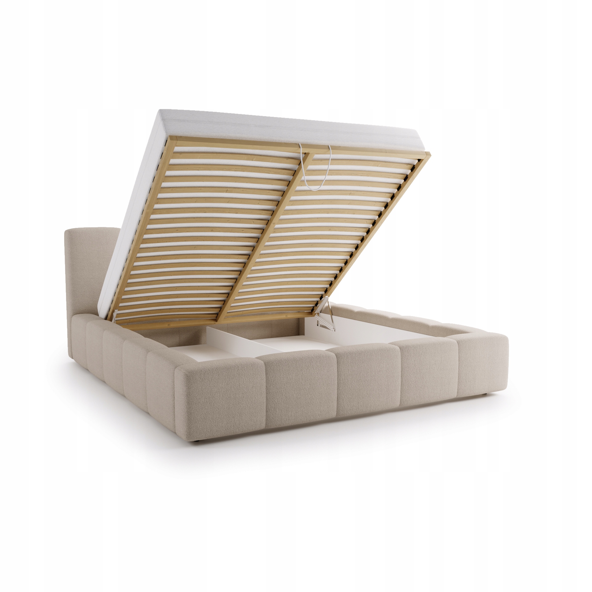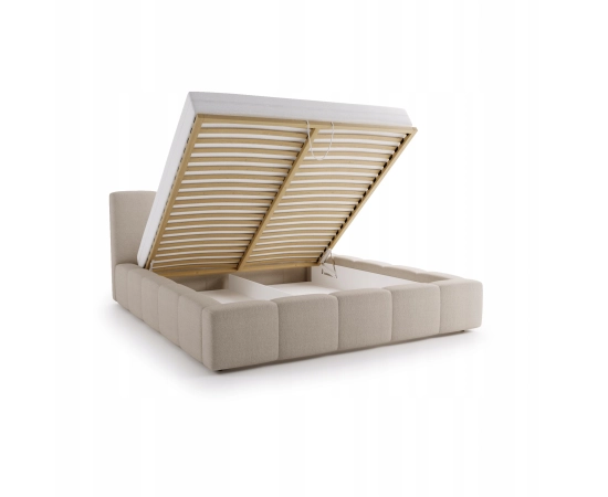 Stelaż drewniany zapewnia trwałość i stabilność, a tapicerka z miękkiej, przyjemnej w dotyku tkaniny jest dostępna w szerokiej gamie kolorów, co pozwala dopasować łóżko do każdego wnętrza. Łóżko sypialniane Astri 200 zostało wyposażone w wbudowany pojemnik na pościel, który zapewnia dodatkowe miejsce do przechowywania i pomaga utrzymać porządek w sypialni. Komfortowe wypełnienie grubą pianką gwarantuje wygodę i przyjemny wypoczynek, spełniając najwyższe oczekiwania użytkowników.