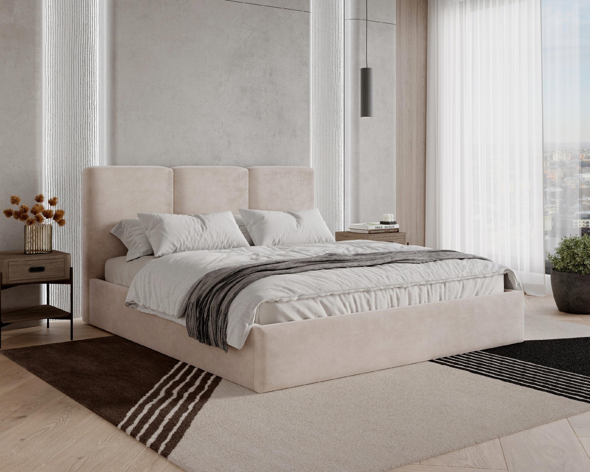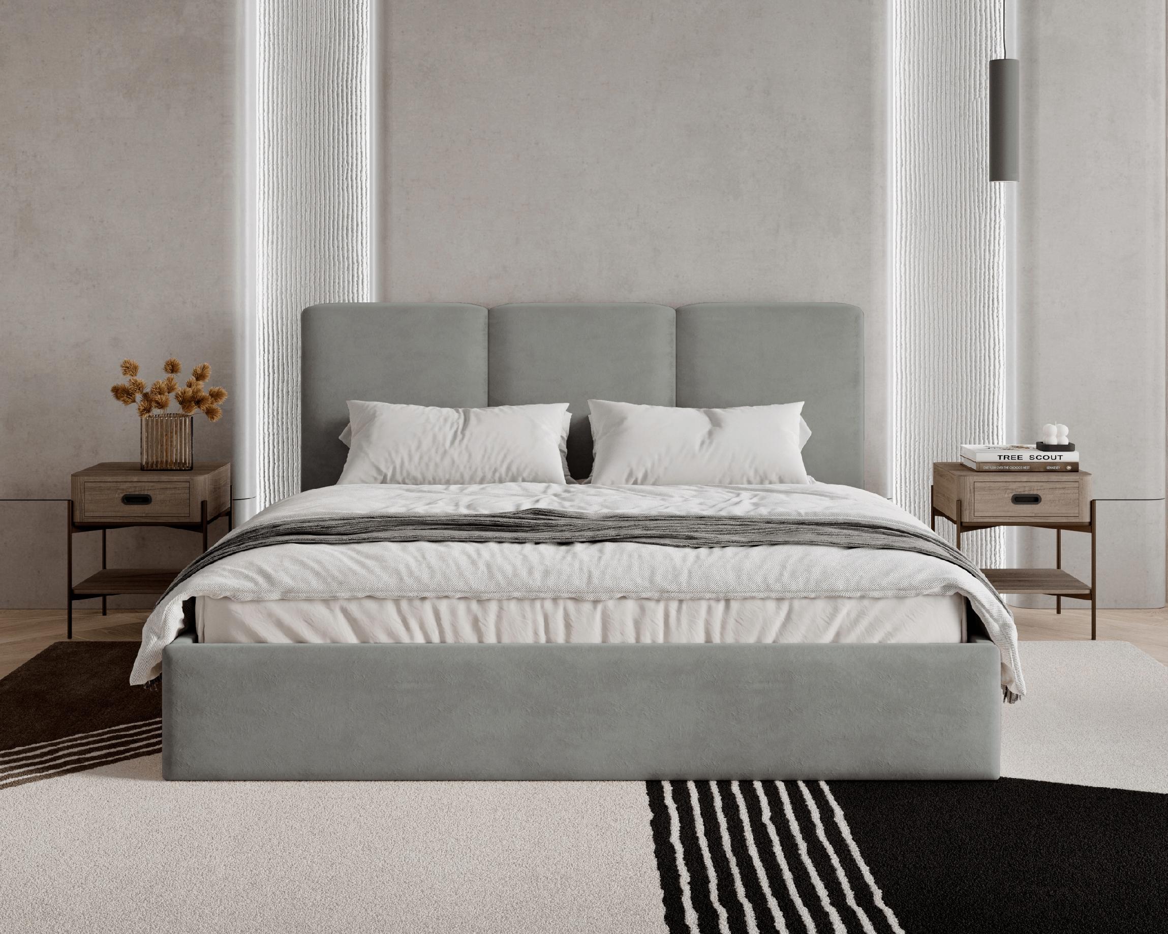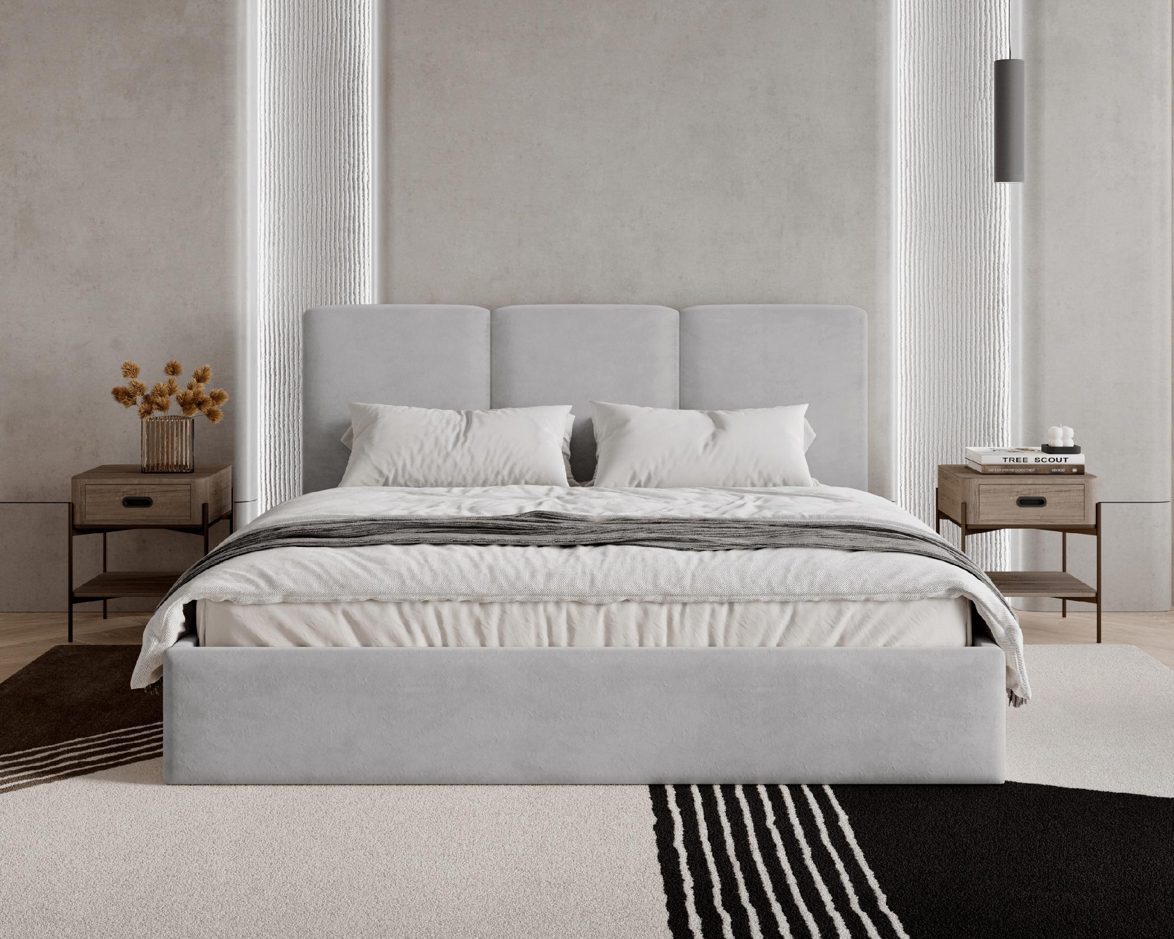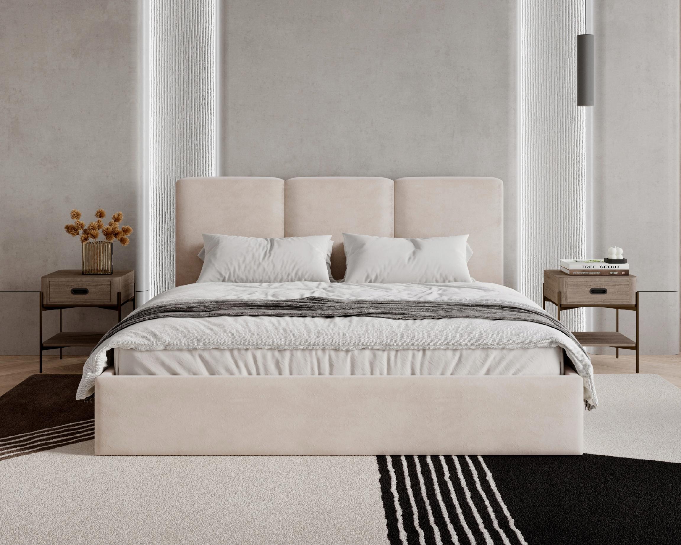 Model Mira wyróżnia się modnymi pionowymi pasami na wezgłowiu, które nadają całości subtelnej elegancji i nowoczesnego charakteru. Miękkie wezgłowie zapewnia komfortowe oparcie, idealne do wieczornego relaksu lub czytania w łóżku.