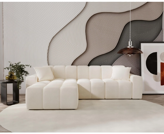 Narożnik co salonu Bueno to połączenie nowoczesnego designu i wyjątkowego komfortu. Jego kształt litery L idealnie pasuje do każdego salonu, oferując przestronność i wygodę. Wykonany z wysokiej jakości pianki HR oraz sprężyn falistych, gwarantuje niezwykle miękkie i komfortowe siedzisko, które doskonale dopasowuje się do ciała, zapewniając relaks na najwyższym poziomie.