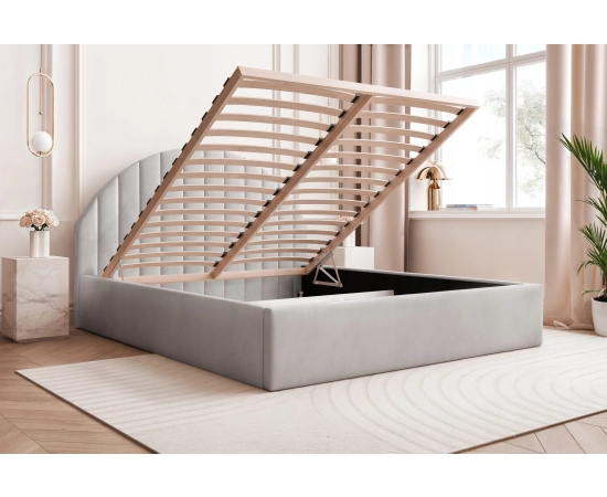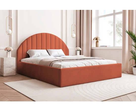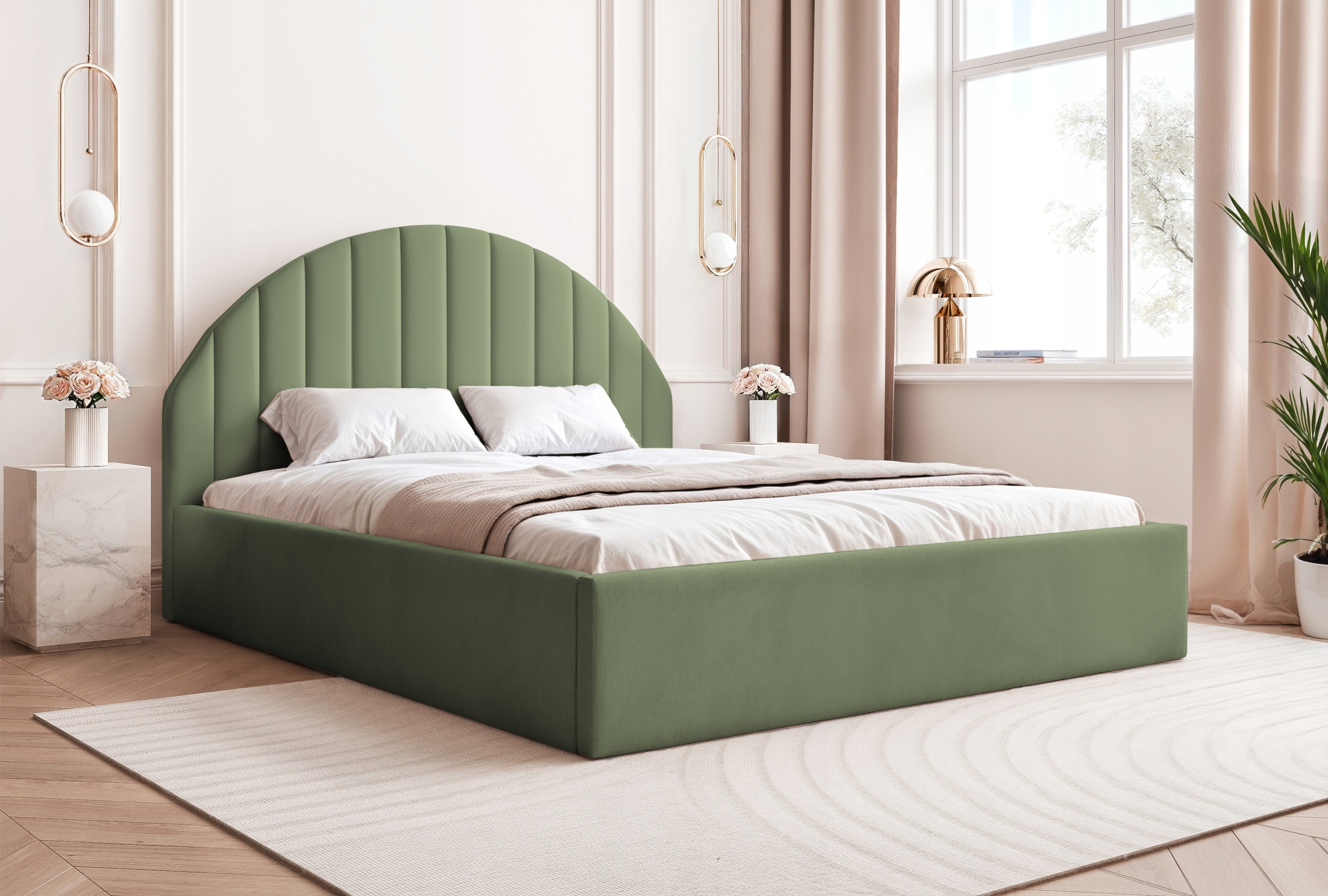 Łóżko Charlott 180x200 to elegancka propozycja do nowoczesnej sypialni, łącząca modny design z praktycznymi rozwiązaniami. Charakterystyczne półokrągłe wezgłowie z dekoracyjnymi pionowymi paskami nadaje mu wyjątkowy styl i lekkość wizualną. Wąskie boki łóżka podkreślają subtelną formę mebla, a pojemnik na pościel zapewnia wygodne i funkcjonalne przechowywanie. Łóżko sypialniane zostało tapicerowane miękką i przyjemną w dotyku tkaniną, która doskonale komponuje się z nowoczesnymi aranżacjami wnętrz. Tapicerowane łóżko Charlott 180x200 to idealne połączenie estetyki, komfortu i funkcjonalności.